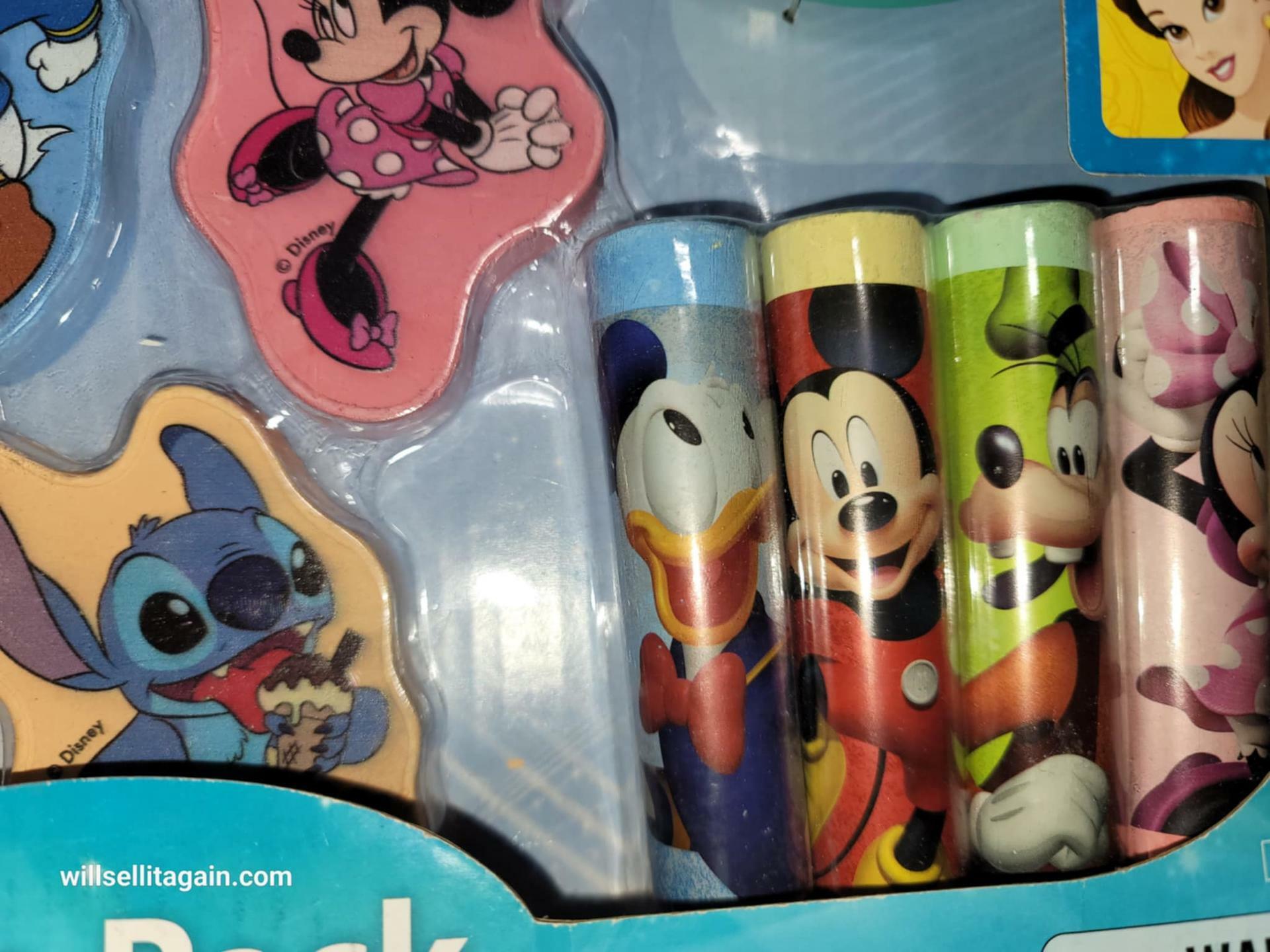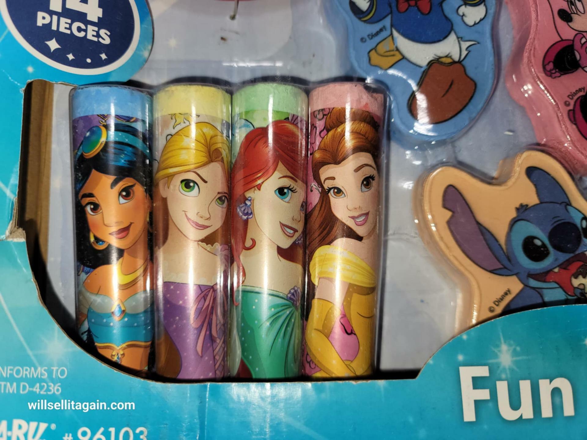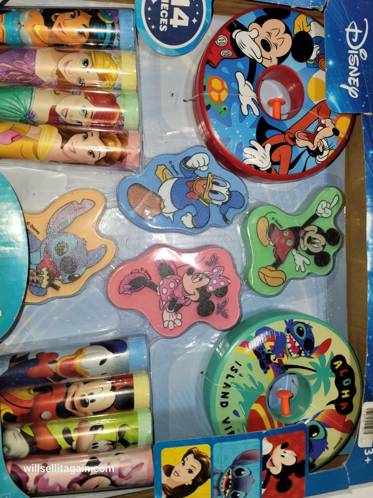 The water squirters are contain Disney characters, making them more exciting and engaging for children. They can be used to squirt water in outdoor play, especially on hot days, or as part of water games. The sidewalk chalk comes in various colors and is perfect for drawing and creating artwork on the sidewalk or driveway. Each chalk piece is also themed with Disney characters, adding extra charm to children's creations.