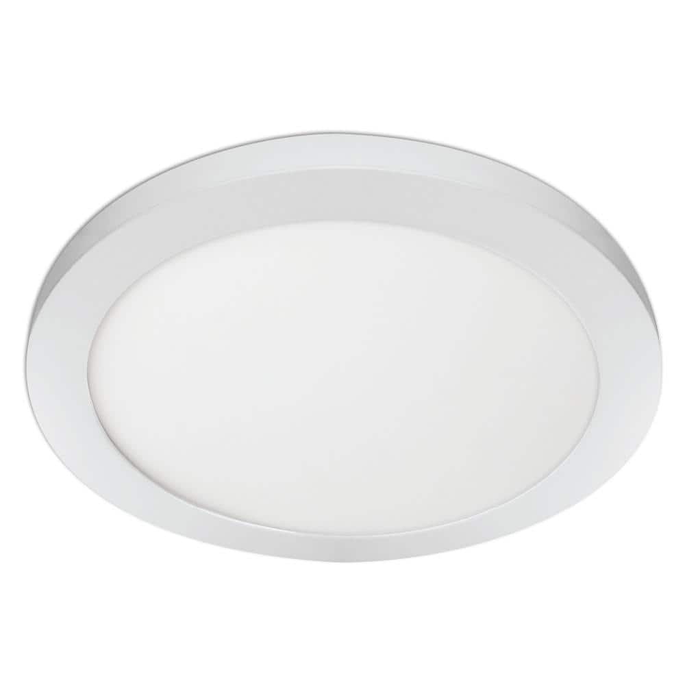 Get the right light for any situation or task with the Commercial Electric 15 in. White Round Dimmable LED Flat Panel Ceiling Flush Mount Light Fixture with Selectable Color Temperature. Its ultra slim, low profile design (less than 1 in.) is perfect for any low ceiling area and the no-glare, edge-lit LEDs are integrated so there are no bulbs to replace. with our selectable color switch, you can preset your preferred light color temperature: soft white, neutral white, bright white, daylight or daylight deluxe (3000K/3500K/4000K/5000K/6500K) or set it to switch, for an easy toggle between color temperatures with a simple flip of a standard light switch. with multiple light color temperatures to choose from, along with full range dimming (with a compatible dimmer), your lighting can suit your mood. This energy-efficient fixture uses 22.5-Watt of electricity and up to 80% less energy than a standard incandescent light bulb and produces even light distribution of 1650 Lumens. The streamlined design of these LED