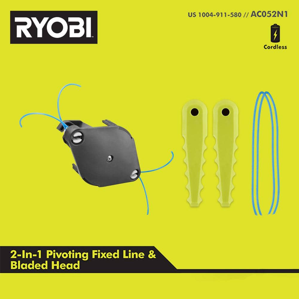 The RYOBI 2-in-1 String Trimmer head adds versatility to any RYOBI automatic feed string trimmer. With the ability to use fixed line or serrated blades on this trimmer head, you are able to take down thick weeds and heavy vegetation effortlessly. Change between serrated blades or fixed line tool-free and with ease. For best use of this trimmer head, avoid edging, contact with fencing or walls with the serrated blade.