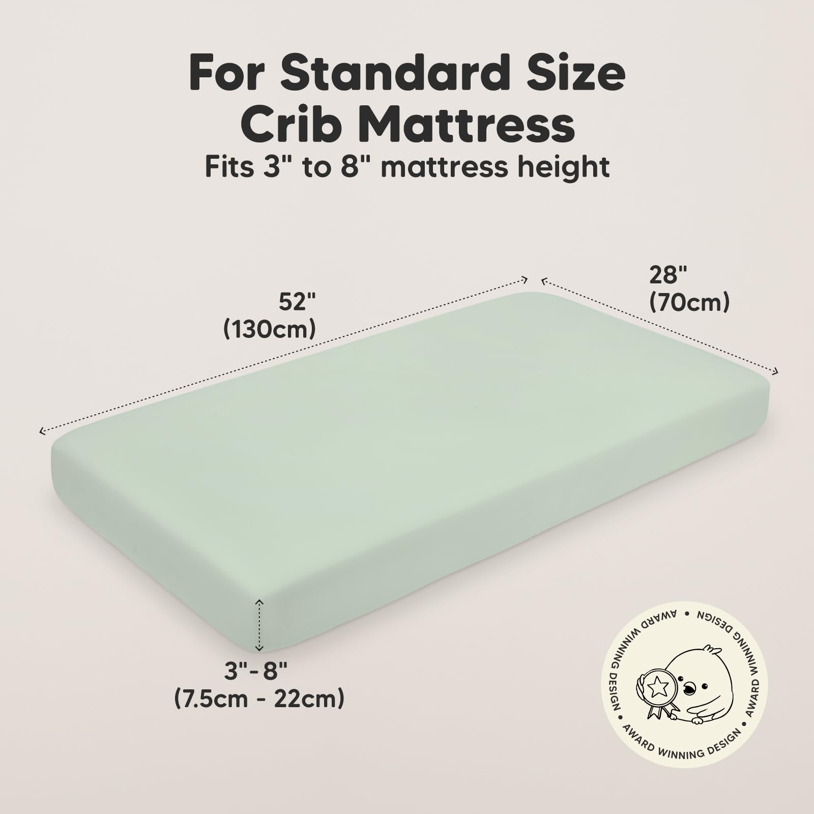 With our exclusively designed crib mattress sheet, your baby is going to love sleeping or playing in his/her crib. Soft contrasting colors and cute prints of the crib sheet allows room for creativity and imagination, nurturing your child's developments. Similar to KeaBabies Mini Crib Sheets and Pack and Play Sheets series, the unisex color of our Soothe Crib Mattress Sheets set make it suitable for both baby girls and boys. Our baby mattress sheets fits standard crib mattresses: 52"(L) by 28"(W) and [H: 3"-8"].