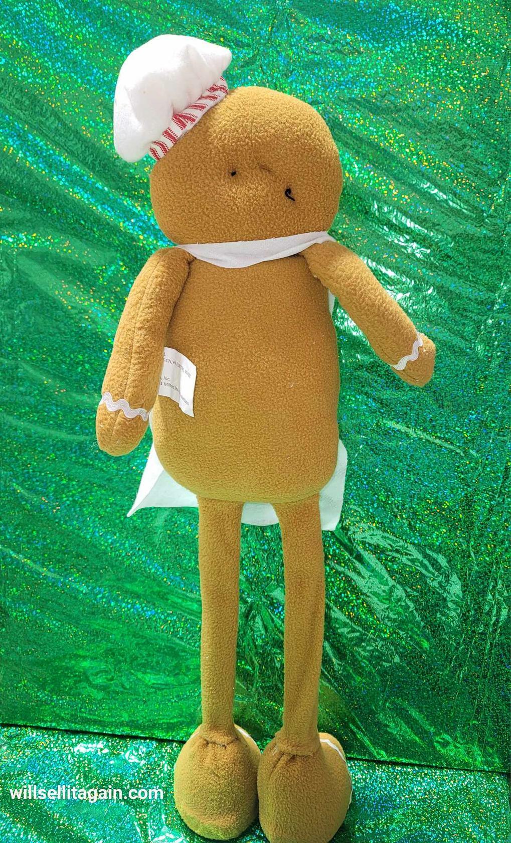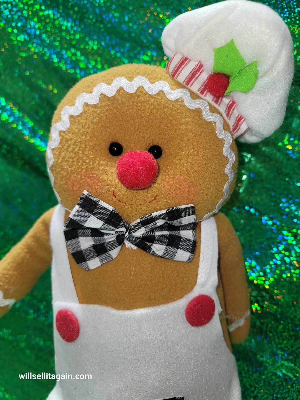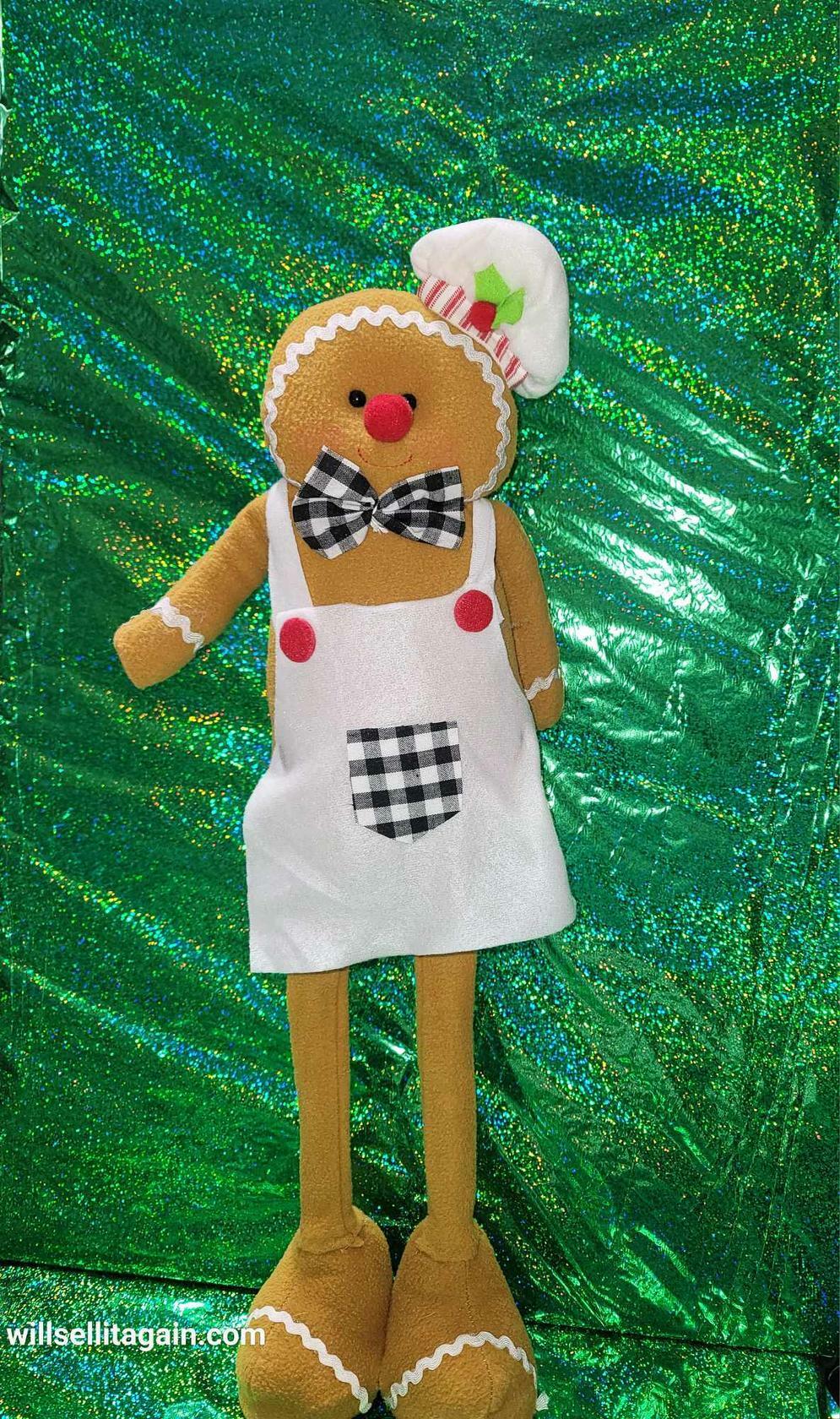 24 inch Standing Gingerbread ManThis Gingerbread Man is wearing a apron and chef hat like he about to cook a meal. He also has on his really cute black/white plaid bow tie.