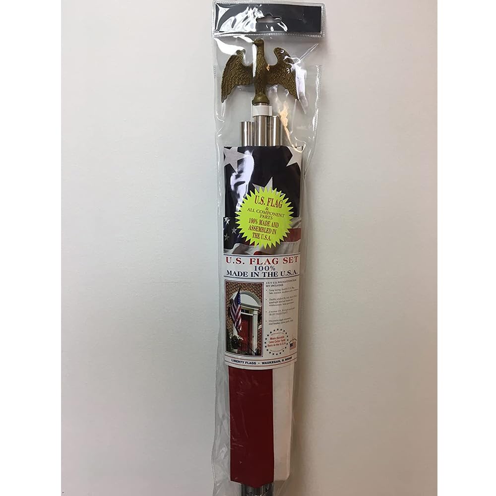 Product Description The US200 flag kit is unique as it is 100% Made in the USA including all component parts. The flag is a printed 3 x 5' polycotton material that is long lasting and has less color fade. The 3 section steel pole set extends to 6' with the eagle and bracket is easy to install. From the Manufacturer "The US200 flag kit is unique as it is 100% Made in the USA including all component parts. The flag is a printed 3 x 5' polycotton material that is long lasting and has less color fade. The 3 section steel pole set extends to 6' with the eagle and bracket is easy to install."