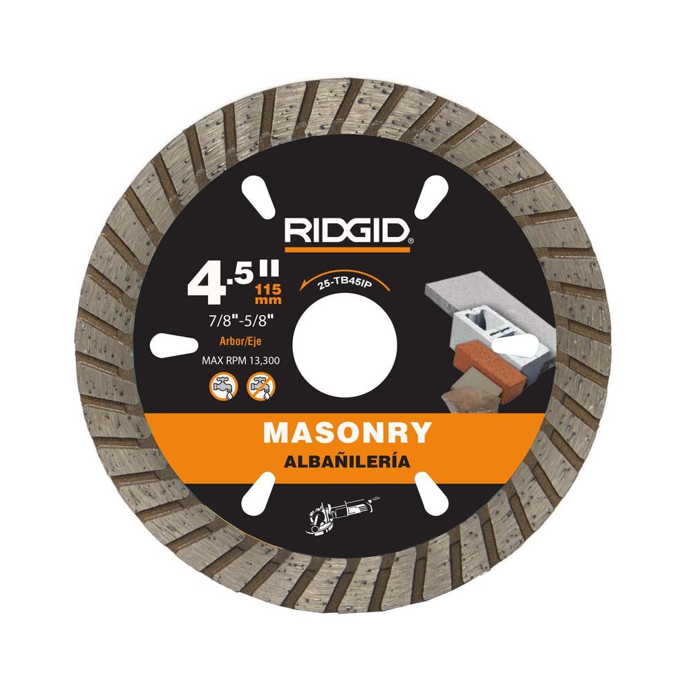 RIDGID Turbo Diamond Blades are manufactured with the contractor in mind. These blades are engineered for maximum cutting performance and 3x longer life than standard abrasive blades. The Turbo rim design provides fast, clean and accurate cuts on stone, brick, block and concrete. It's also an excellent choice for roof tile and other masonry products. Use this blade on 4 in. angle grinders with 7/8 in. arbor, 5/8 in. and 20 mm adapters included.