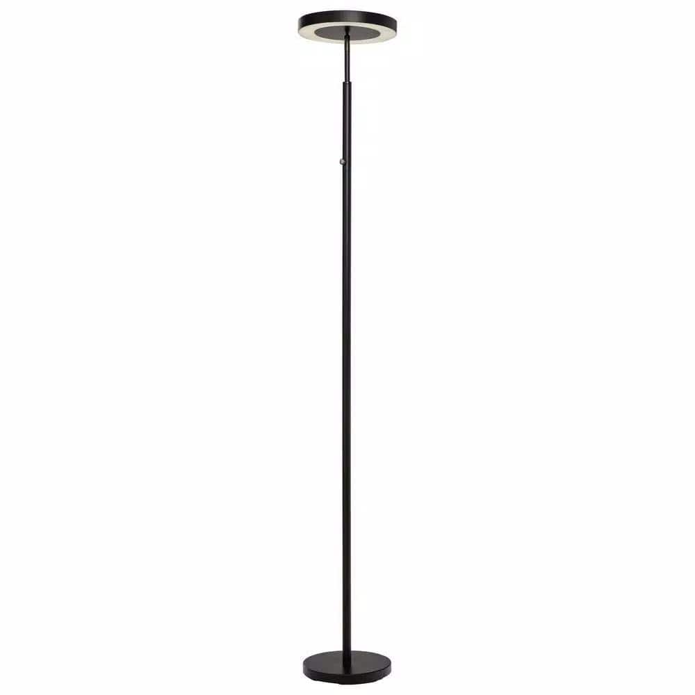 Contemporary functionality is on display in this Hampton Bay LED floor lamp. The 71.65 in. lamp features a 12 in. round disc lampshade housing a 36-Watt integrated LED bulb controlled by a touch dimmer on the pole.