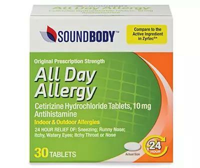 Cetirizine 10 mg tablets work by blocking histamine that your body makes during an allergic reaction. This medicine is used to relieve allergy symptoms such as watery eyes, runny nose, itching eyes/nose, sneezing, hives, and itching.