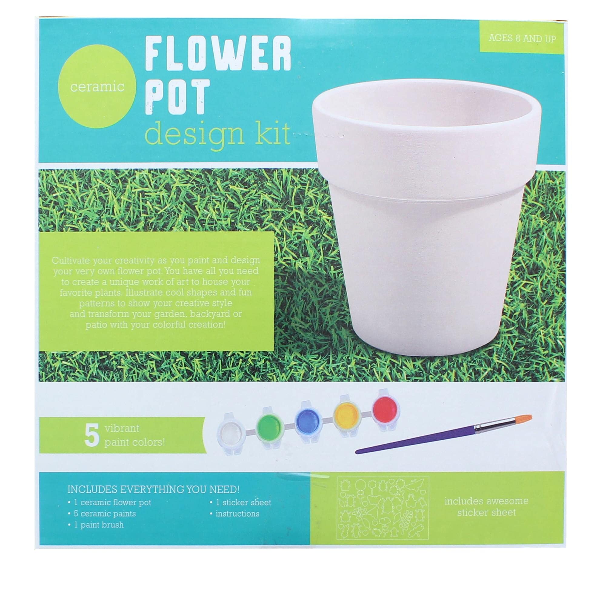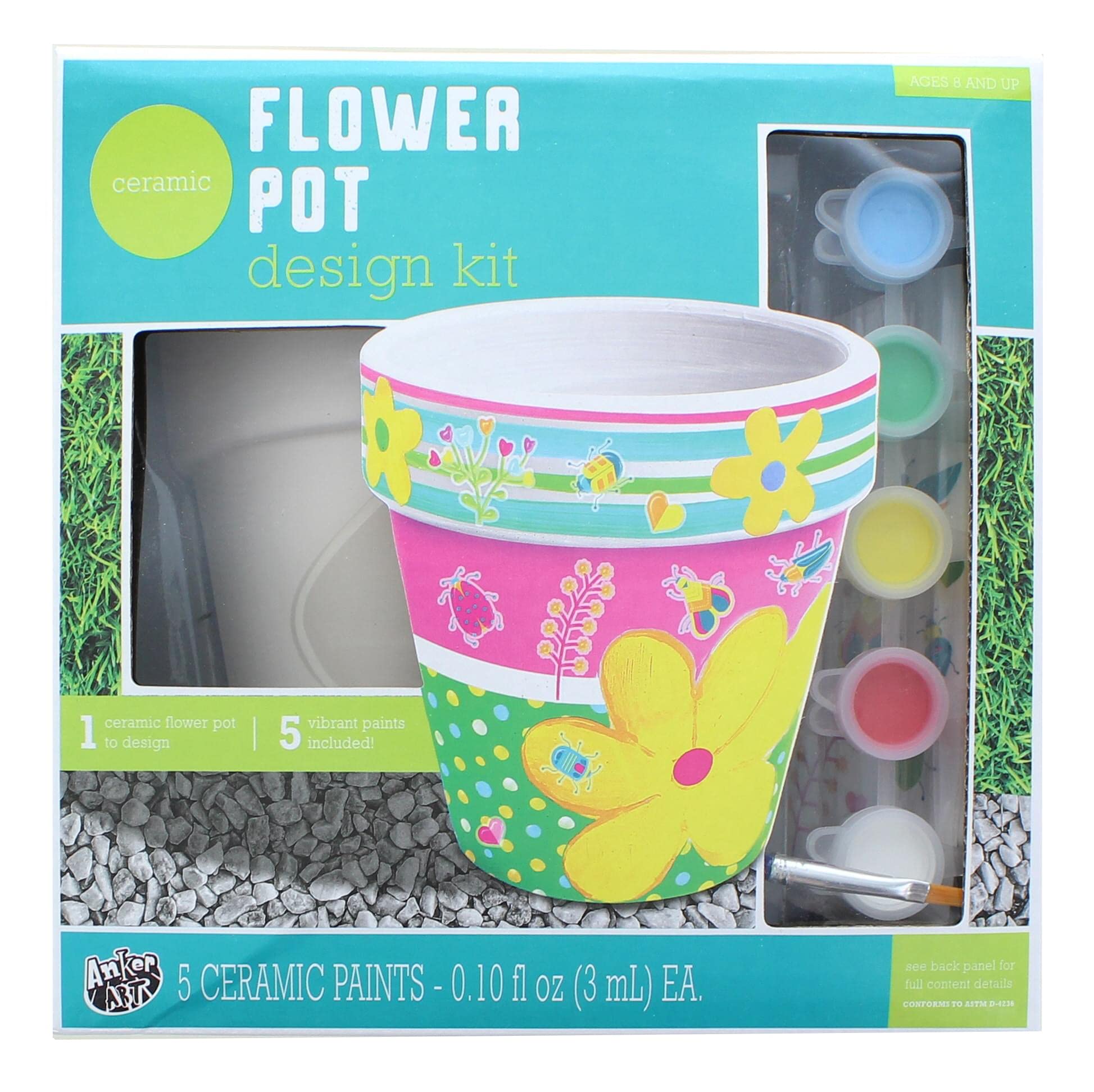 Ages 8 and up. 5 Paints - 0.10 fl oz (3 mL) ea. Plant your own. 1 ceramic flower pot to paint & design. 5 vibrant paints included! See back panel for full content details. 1 paint and design! 2 dry and display! Cultivate your creativity as you paint and design your very own flower pot. You have all you need to create a unique work of art to house your favorite plants. illustrate cool shapes and fun patterns to show your creative style and transform your garden or backyard with your colorful creation! 5 vibrant paint colors! Includes everything you need! 1 flower pot. 5 paints. 1 paintbrush. 1 sticker sheet. Instructions. Includes awesome sticker sheet. Anker Play Products. Color & contents may vary. Designs are the exclusive property of Anker Play Products LLC and may not be reproduced in any media without the express authorization of Anker Play Products LLC. Images for illustration purposes only. Conforms to ASTM D-4236. www.ankerpp.com. Instagram.com/ankerplayproducts. facebook.com/AnkerPlayProducts. Questions or comments? Do not contact store. Call our toll free 877-236-1945. customerservice(at)ankerpp.com. Designed in USA. Made in China.