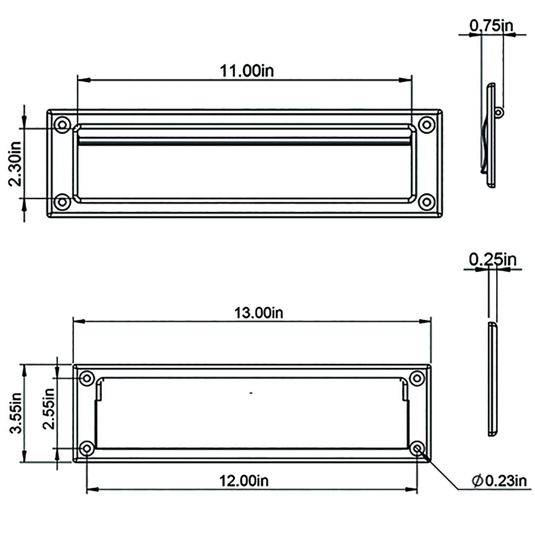 A perfect addition to any residence, the Mail Slot enables mail to be delivered right to the door. The Mail Slot features an 11 in. wide opening and spring-loaded front plate with an interlocking flap for tight closure. It can be easily installed as a replacement for an existing slot or new when combined with the Mail Slot Sleeve. This durable Mail Slot will provide outstanding service in all types of weather. Mounting hardware is also provided.