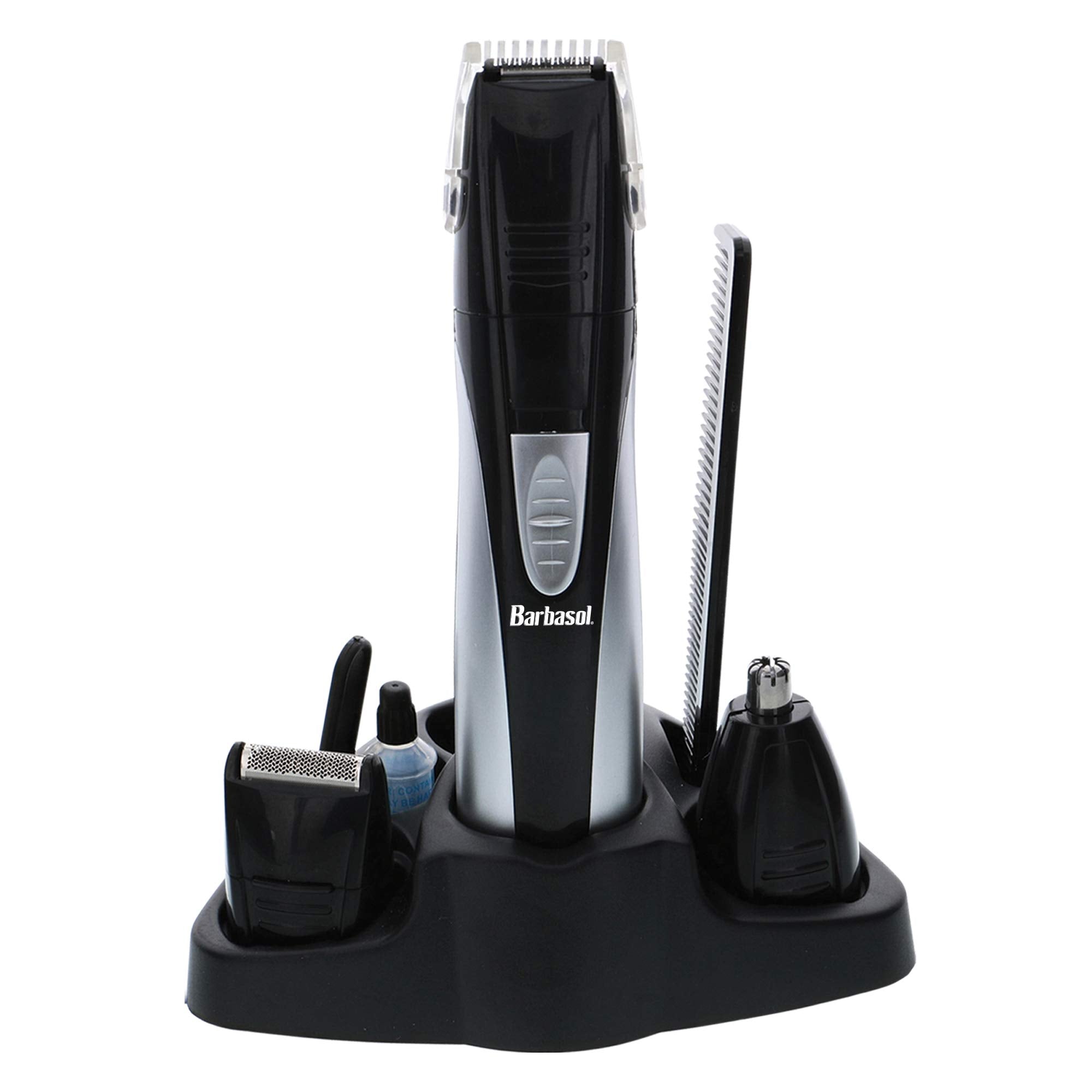 The Barbasol 7 Piece All-in-1 Grooming Set comes with 3 interchangeable, stainless steel shaving attachments for your device. The Beard Trimmer refines and styles tricky areas like under the nose, sideburns and beards. Coupled with the Ear & Nose Trimmer, Foil Shaver and Grooming Comb, you'll have everything you need to keep your hair neat and clean. Included in this kit is a convenient stand to keep all of the attachments and tools neatly organized in your grooming area.These are customer returns. Could be dirty and need cleaned. They are untested. Being sold AS IS in warehouse.