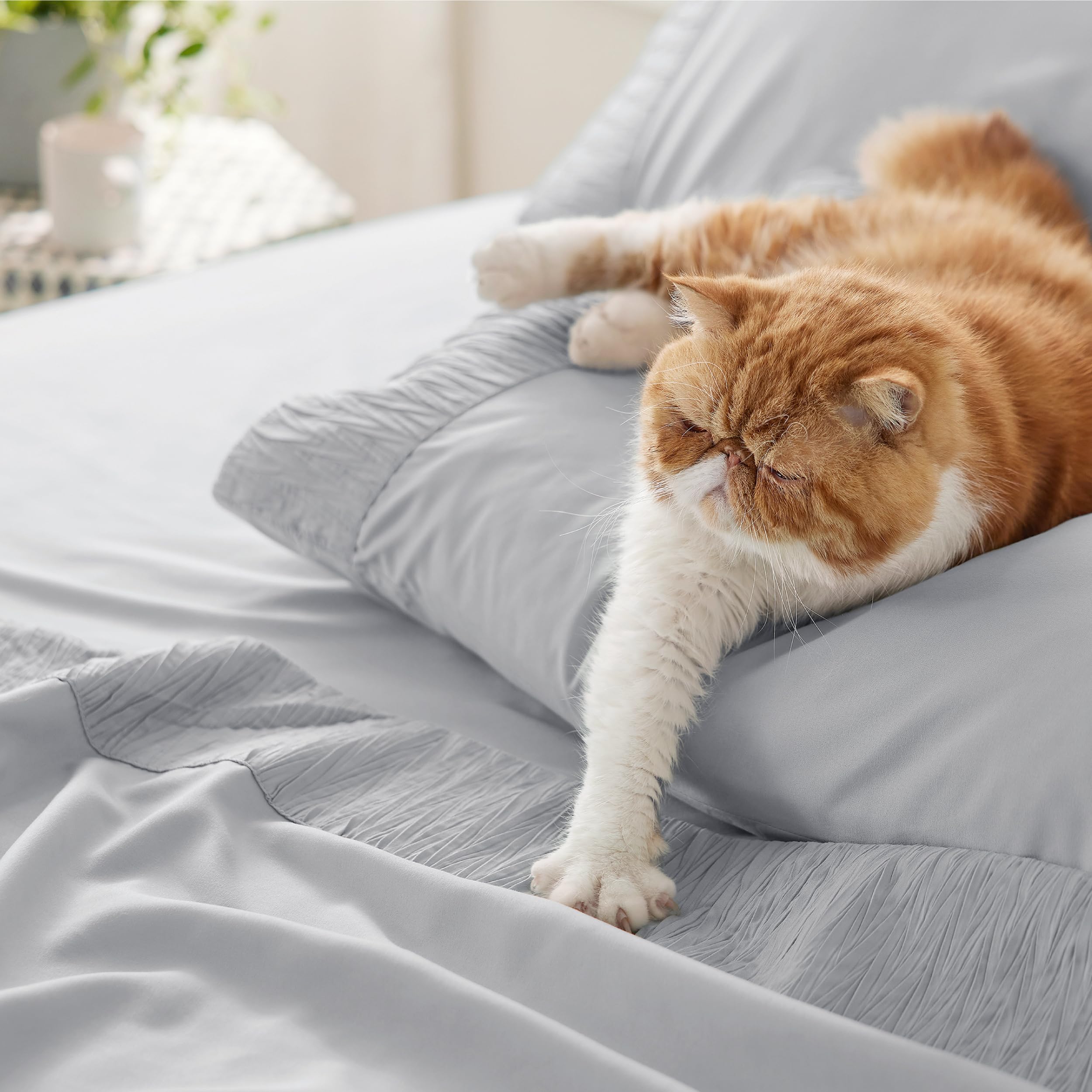 Create a charming look in your bedroom with this Bedsure Sheet Set. This stylish sheets set features ruched detailing that will give your sleeping space a touch of elegance and color.