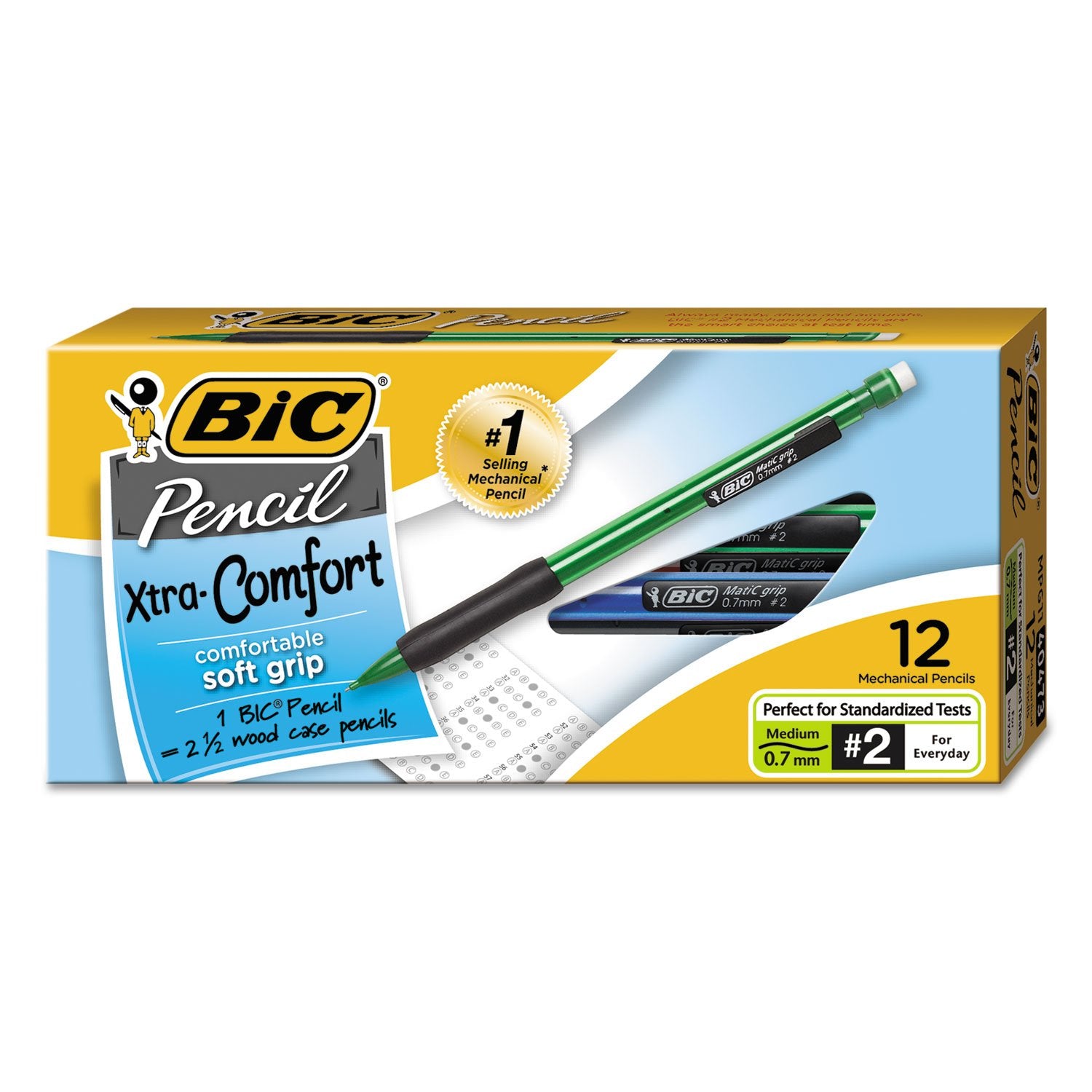 Xtra Comfort mechanical pencils feature vibrant barrel colors and comfortable rubber grips for an ideal writing experience. The lead advances quickly and easily. One BIC mechanical pencil equals 2 1/2 woodcase pencils. Perfect for standardized tests.