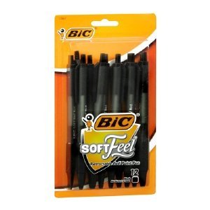 BIC Soft Feel Retractable Black Ballpoint Pens- Write in Comfort BIC Soft Feel Retractable ballpoint pen with black colored ink and a 1.0-mm medium point has a brass point with tungsten carbide ball for precision performance. Pen has a non-slip grip for comfortable writing, sold as 12 per pack. Medium point, 1.0 mm Black Brass point with tungsten carbide ball for precision performance Non-slip comfort grip 12 per pack Write your lists, notes, and other daily messages using this pack of a dozen BIC medium-point SoftFeel retractable black ballpoint pens. With twelve pens in each pack, you'll have enough to last you a while. Write Just About Anything These pens' medium points make them great for anything from writing a quick note to filling in a form. They're also retractable, so you don't have to worry about losing the lids. If you make a mistake, you can easily fix it using correction tape. Write Clearly With brass points and tungsten carbide balls, these pens give you precision control over your writing. You'll be able to place your words or drawings exactly where you want them on the paper. Keep Your Hand Comfortable These Soft Feel pens have special grips to keep your hand feeling comfortable even if you're writing for a long time. The nonslip grips help keep your hand in the perfect position for writing.