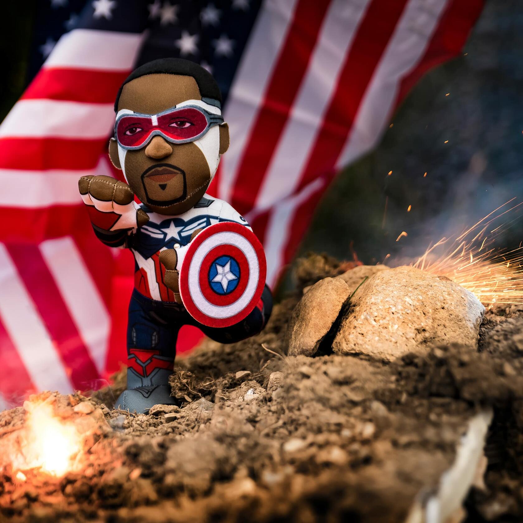 Bleacher Creatures Marvel Captain America (Sam Wilson) 10" Plush Figure - Superheroes for Play and Display We craft your heroes into plush toys with personality for fun that lasts. Bring home your favorite Marvel Character! This Marvel Captain America Bleacher Creature is the perfect toy for any fan. That's right, Sam Wilson is now Cap. Every Bleacher Creature captures the essence of an icon and turns them into a friend. Our officially-licensed plush figures encourage fun, inspiration and creativity among fans of all ages. Collect them, hang out with them, give them to friends. With the unique ability to stand on their own, Bleacher Creatures are perfect for play or display!