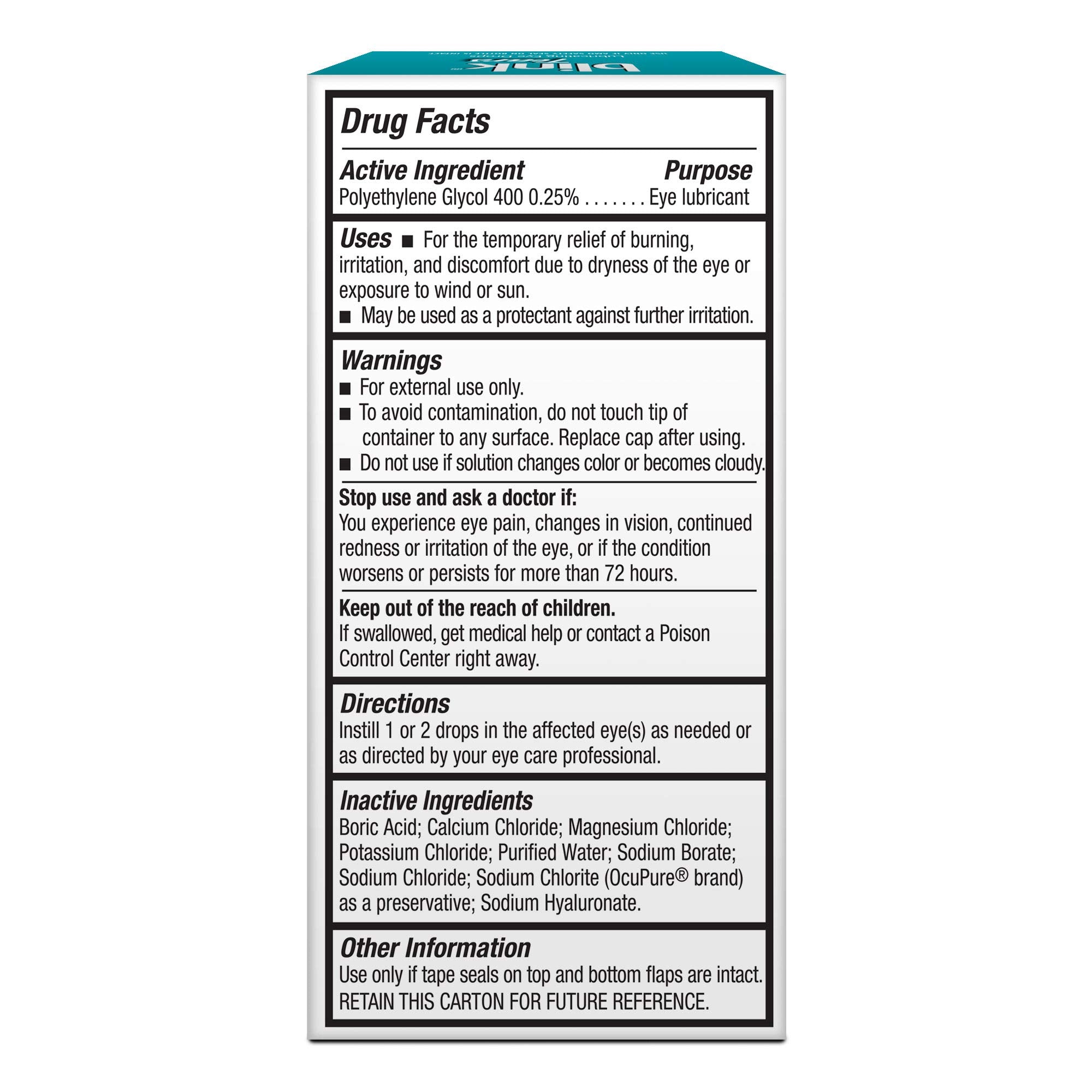 Lubricating Eye Drops from Blink help relieve symptoms and discomfort from mild to moderate dry eyes that can be caused by exposure to the sun, wind and more. Instill one or two drops in the affected eye as needed, and your eyes will be soothed quickly and effectively with each blink.