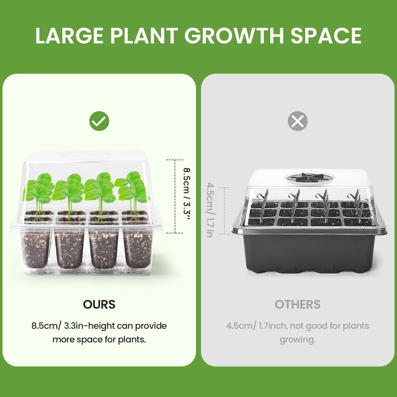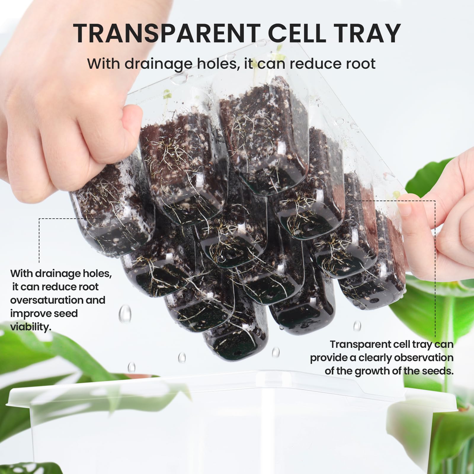 Bonviee 10 Packs 120 Cells Thicken Seed Start Trays Kit with Humidity Dome and Elevated Lids Growing Trays for Indoor Greenhouse & Gardens, Clear