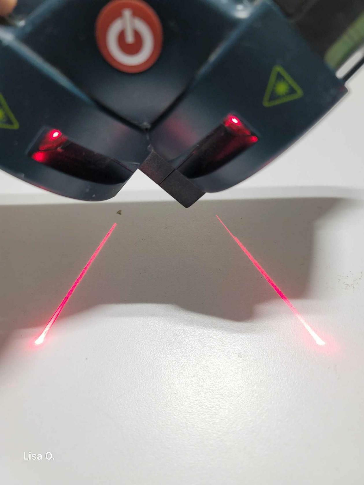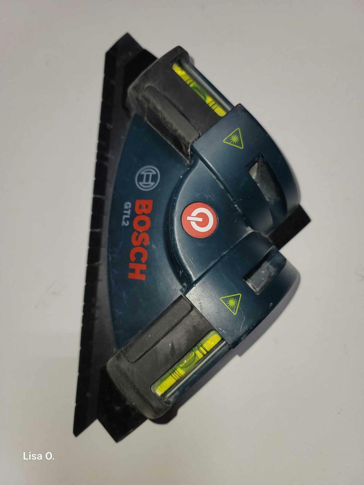 The Bosch Tile Laser Square Laser Level features 2 lasers that can project up to 30 ft. to ensure sufficient space for markings. Integrated vials provide additional accuracy when attempting to achieve level surfaces. Batteries are included to let you get working right away.This is a used item. I have included pictures of the actual item.