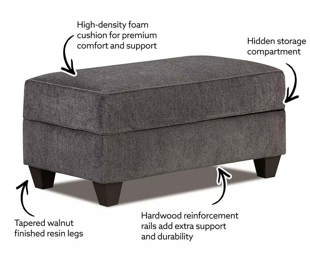 The Tripoli ottoman by Broyhill adds comfort and organization to your favorite entertainment space. Its rectangular silhouette is upholstered in soft polyester chenille fabric paired with a high-density foam cushion that delivers stylish relaxation. Store blankets and items you need within reach in the convenient hidden storage compartment underneath the hinged top.