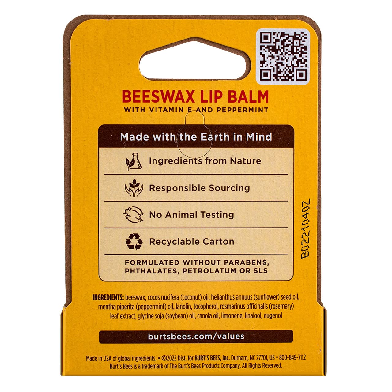 Burt's Bees Moisturizing Lip Balm nourishes and makes your lips feel luxurious. Infused with power packed Beeswax to condition skin and antioxidant Vitamin E to richly moisturize and soften lips, this lip balm nourishes dry lips while keeping them revitalized and hydrated. With a matte finish and moisturizing balm texture, this tube of soothing lip balm glides on smoothly with a hint of Peppermint Oil which leaves your lips with a refreshing tingle. Conveniently tuck this tube into a pocket or purse, so that you can keep natural, nurturing lip care handy. This 100% natural origin beauty product is free of parabens, phthalates, petrolatum and SLS and will beautify and revitalize your lips. Use this natural Burt's Bees Moisturizing Lip Balm to make lips feel their best.