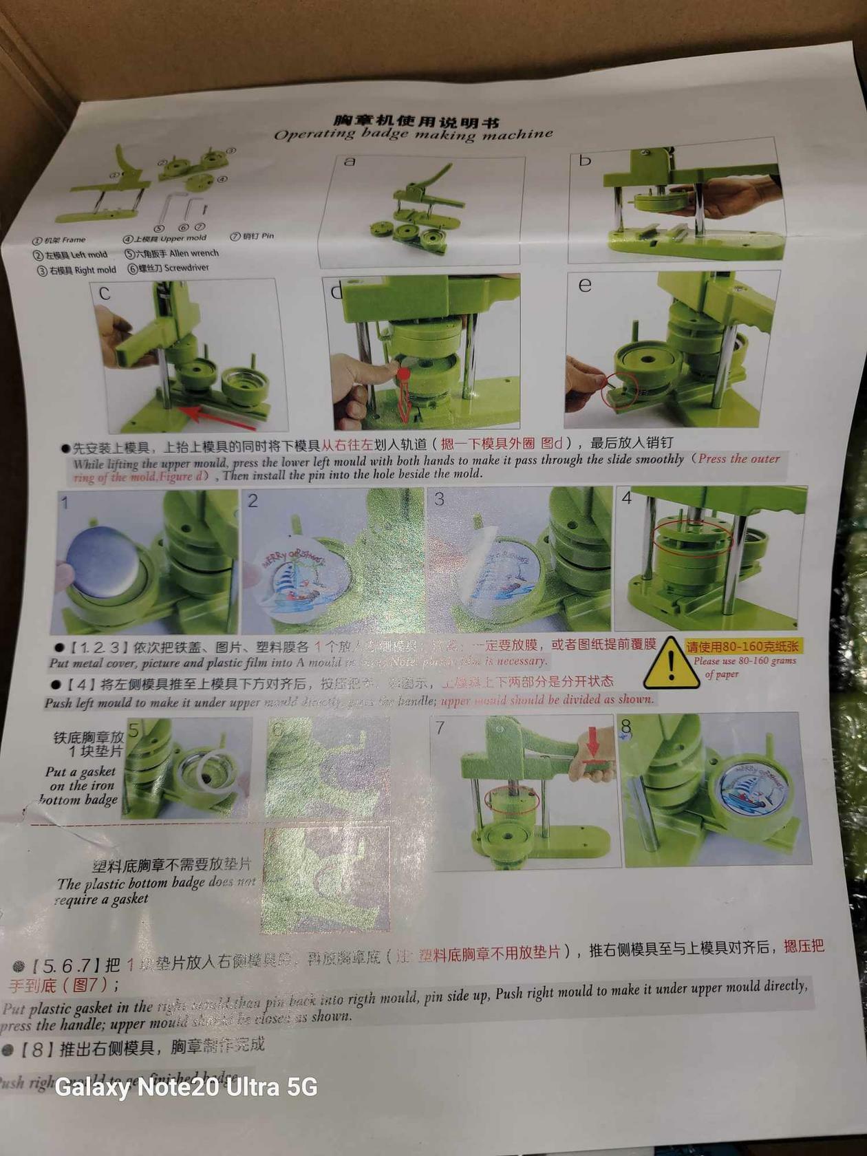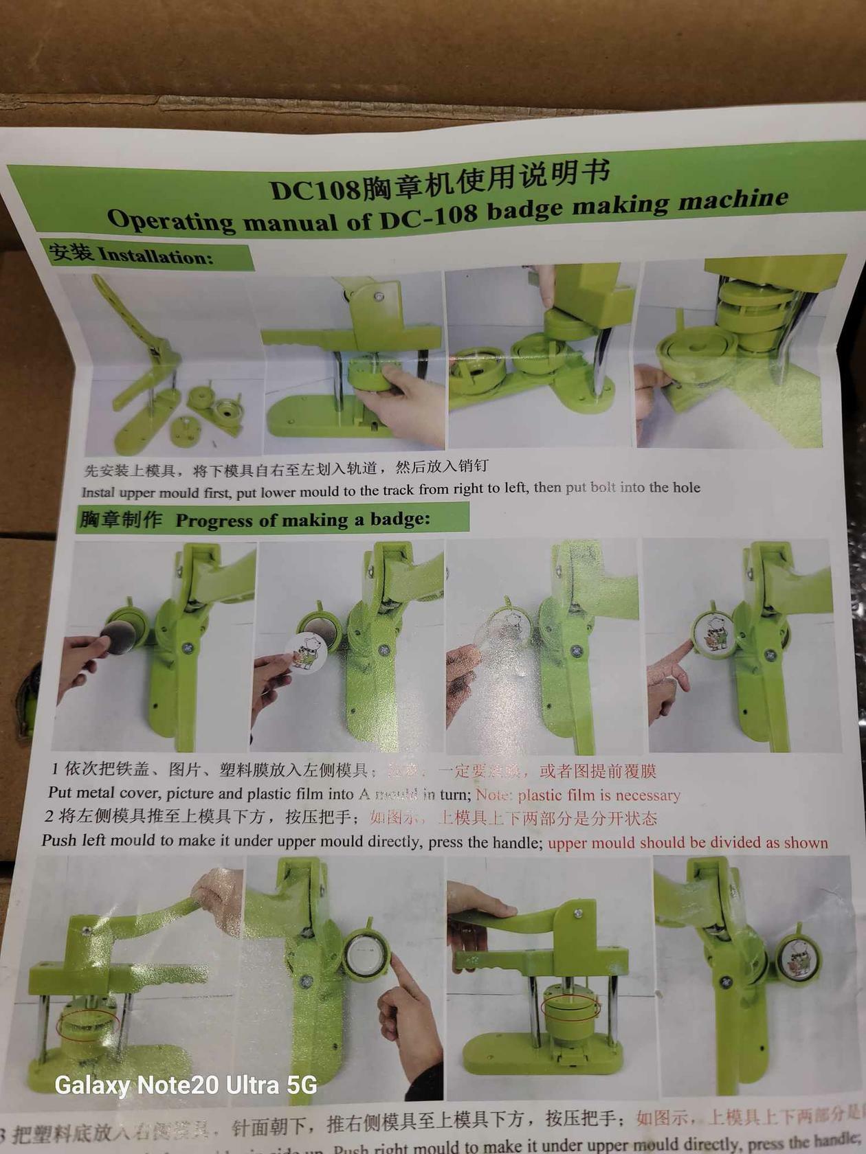 Forth,place transparent film on picture and press down on badge making machine handle.