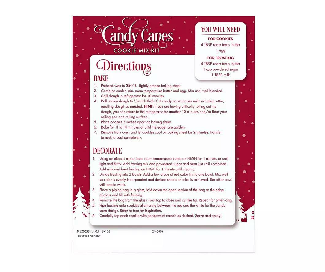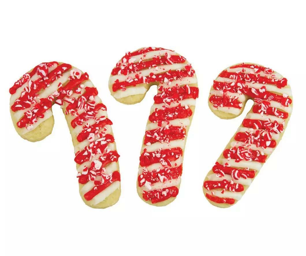 Usher in the holiday season with these festive frosted sugar cookies shaped like candy canes. Scrumptious sugar cookies come with plenty of decorative frosting options and a cane shaped cookie cutter for an unforgettable holiday treat.