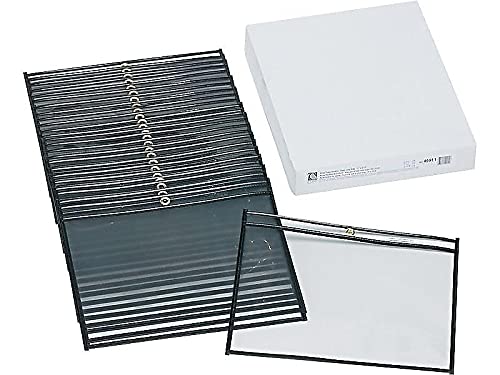 Vast array of shop ticket holders keep documents protected and let you store information right at your fingertips--or wherever it needs to be. Many holders have a convenient hole at the top so you can hang information where it makes the most sense for you and your business. Store and protect work orders, production schedules, inventory cards and more in these stitched shop ticket holders. Super heavyweight, rigid, clear vinyl allows for easy visibility of documents and maximum protection for documents stored in rough, industrial environments. Reinforced black-stitched edges for longer product life. Available in two styles: Both Sides Clear and Clear Front with Pressboard Back.