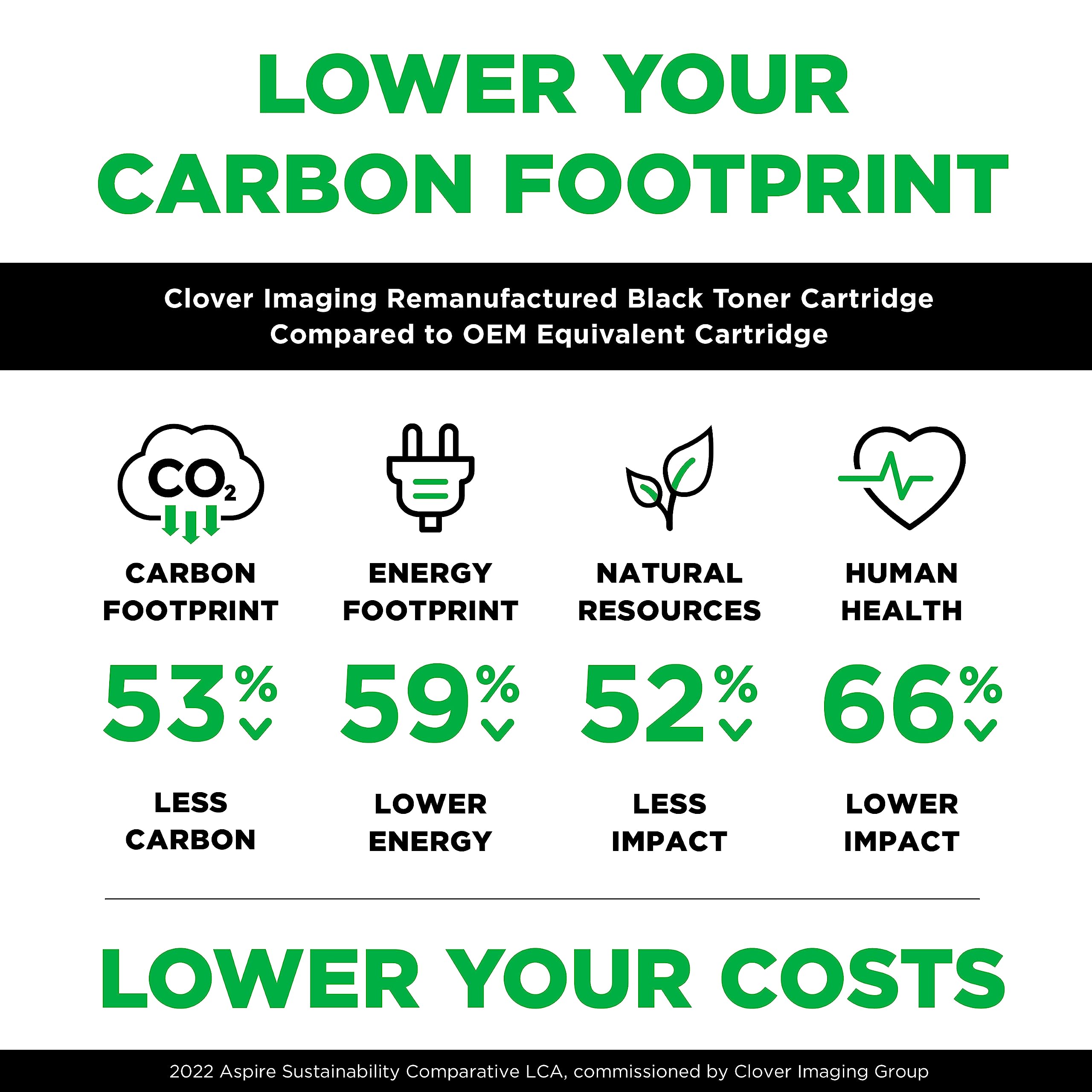 Did you know that toner cartridges from Clover Imaging will provide you with incredible savings and help you lower your carbon footprint? Clover Imagings sustainable monochrome laser cartridges are remanufactured using 89.6% recycled content and are designed to keep cartridges out of landfills and money in your pocket. For businesses looking for a high-quality, sustainable product at an affordable price, the choice is clear.