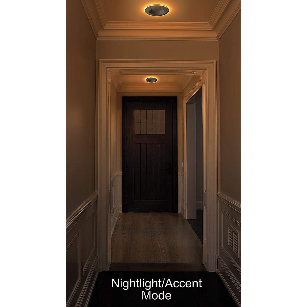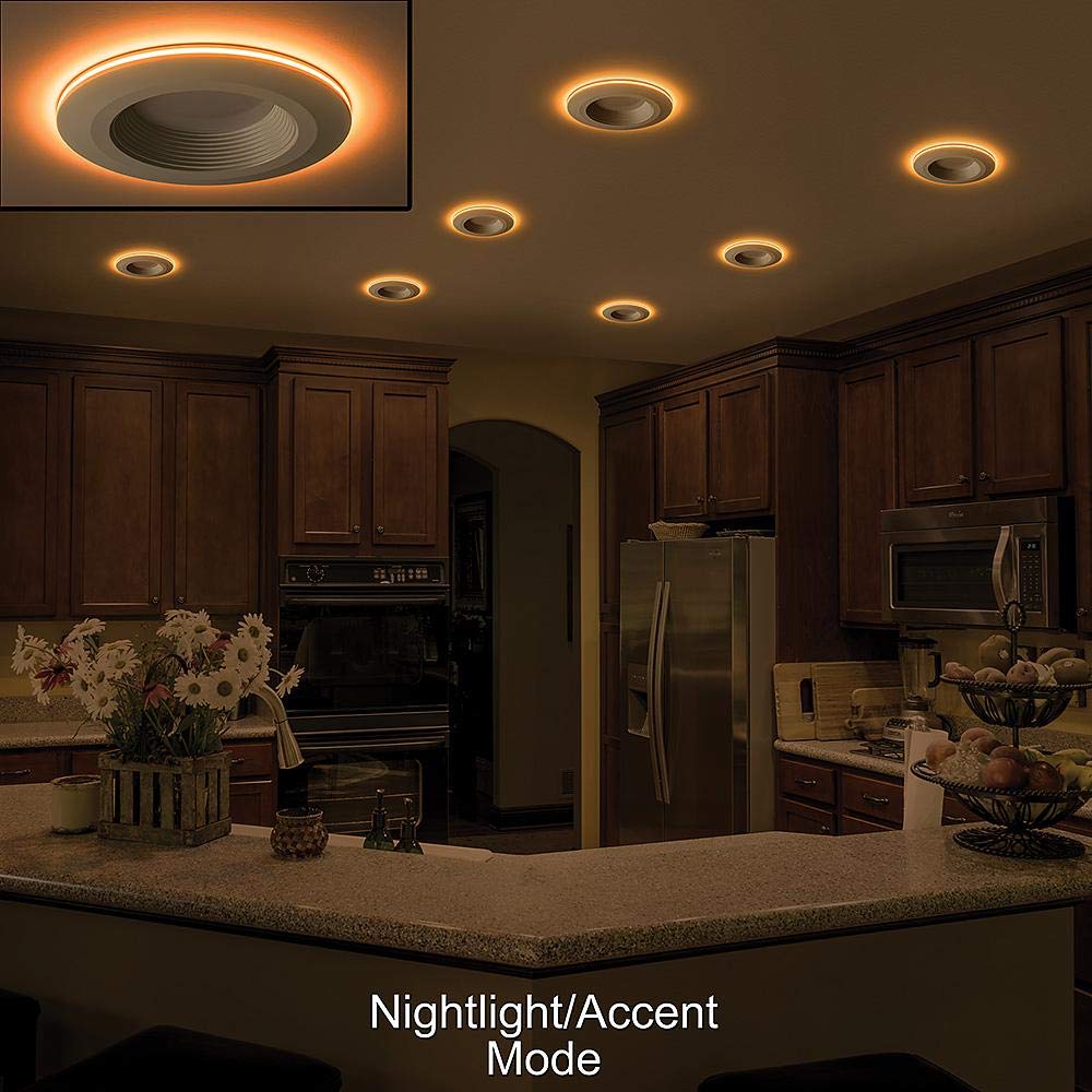 This Commercial Electric 4 in. LED Recessed Trim Downlight with Nightlight feature illuminates a soft Amber color on the trim of the downlight activated by your wall or dimmer switch. In addition, you have 5 color selections to adjust the lighting in your room from Warm White to Daylight using a select switch on the back of the fixture. With 625 Lumens of brightness, the equivalent to 50-Watt Replacement Bulbs, this energy-saving light is maintenance free which drastically eliminates time changing light bulbs.
