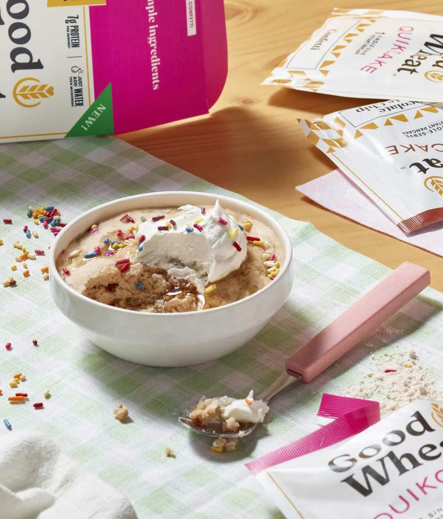 Microwave on high for 75 seconds. Your Quikcake should look nice and golden. If you see any uneven spots, add an extra 10-15 seconds. OR try it on the mini griddle!