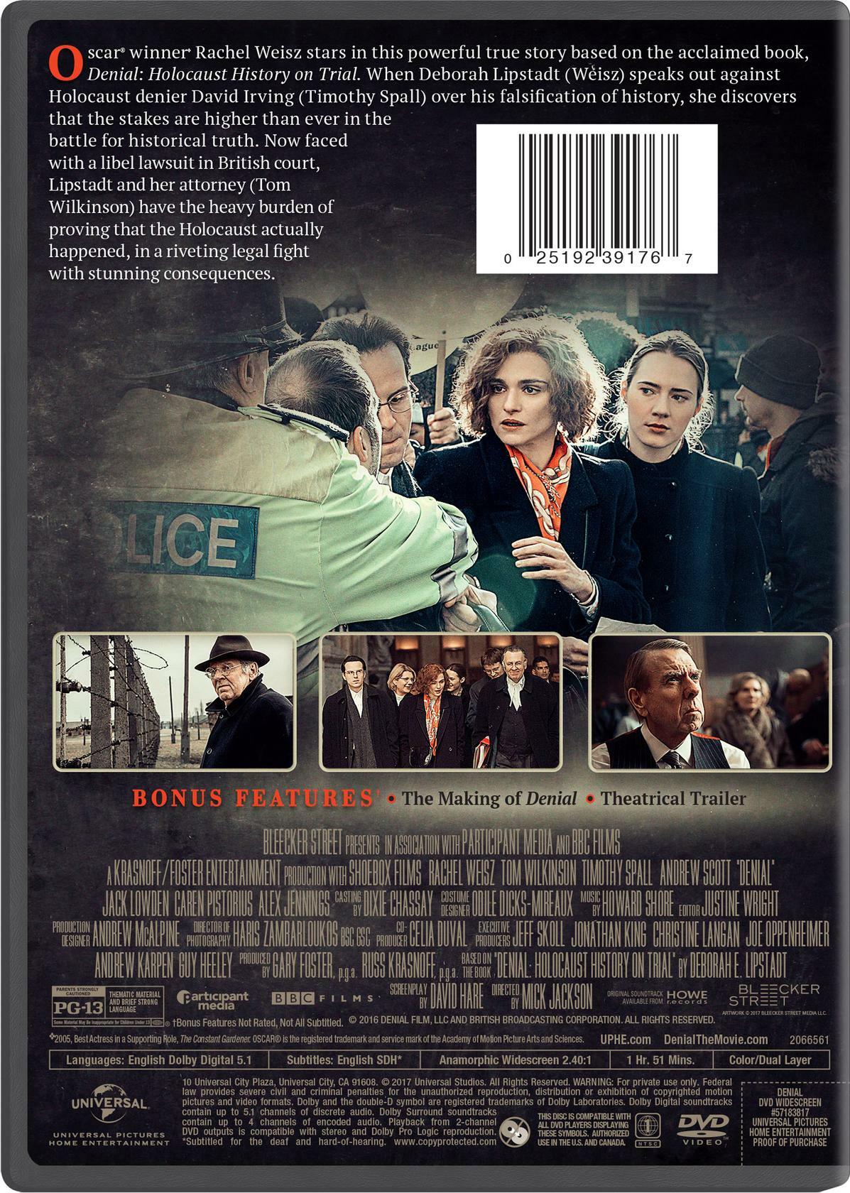 Oscar winner Rachel Weisz stars in this powerful true story based on the acclaimed book Denial: Holocaust History on Trial. When Deborah Lipstadt (Weisz) speaks out against Holocaust denier David Irving (Timothy Spall) over his falsification of history she discovers that the stakes are higher than ever in the battle for historical truth. Now faced with a libel lawsuit in British court Lipstadt and her attorney (Tom Wilkinson) have the heavy burden of proving that the Holocaust actually happened in a riveting legal fight with stunning consequences.