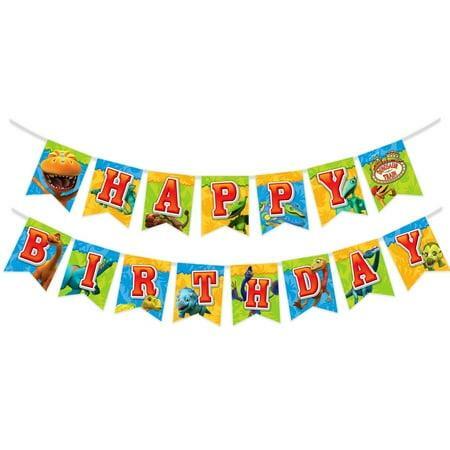 Throw an epic prehistoric party for your little paleontologist with our Dinosaur Train party decorations! Featuring their favorite dinosaur pals these brightly colored and easy-to-set-up decorations will transport your child s celebration into the world of Dinosaur Train. Made from high-quality materials it s durable and long-lasting ensuring that it can be used for multiple celebrations. The banner is preassembled and comes pre-strung for easy hanging. Check out our store for more authentic Dinosaur Train birthday party supplies including backdrops balloons plates and more!! This Dinosaur Train happy birthday banner features: Pre-strung bunting comes ready for decorating and hanging! 15 beautifully designed panels each measures 6.4 x 8.4 inch. All banners are made of high quality card stock printed with vibrant color. And entire banner is adjustable the ribbon measures 9.8ft.