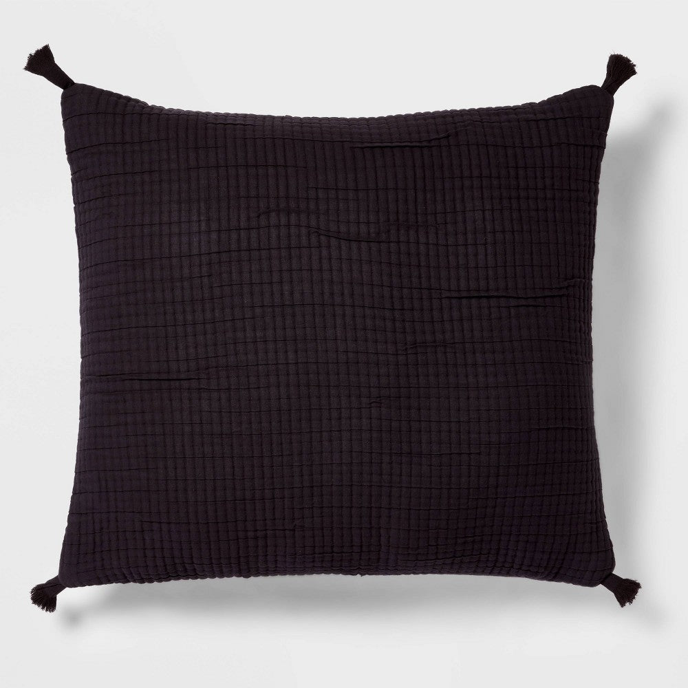 You'll get a comfy surface to lean against when you add this Oblong Double Cloth Decorative Throw Pillow from Threshold? to seating in your home. This square decorative throw pillow features a double cloth construction in a textural finish to create eye-catching appeal. Decorated with tassels on the four corners, this solid-color oblong pillow spruces up the look of your existing decor. Made from a soft fabric exterior, it's great for helping you rest and relax in comfort when you place it on alone or with coordinating pillows on a sofa or armchair. Plus, you'll appreciate the zipper closure that allows easy insertion and removal of the pillow insert. Threshold?: Looks like home, feels like you.
