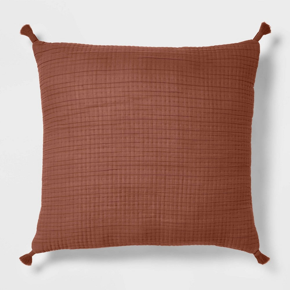 You'll get a comfy surface to lean against when you add this Oblong Double Cloth Decorative Throw Pillow from Threshold? to seating in your home. This square decorative throw pillow features a double cloth construction in a textural finish to create eye-catching appeal. Decorated with tassels on the four corners, this solid-color oblong pillow spruces up the look of your existing decor. Made from a soft fabric exterior, it's great for helping you rest and relax in comfort when you place it on alone or with coordinating pillows on a sofa or armchair. Plus, you'll appreciate the zipper closure that allows easy insertion and removal of the pillow insert. Threshold?: Looks like home, feels like you.