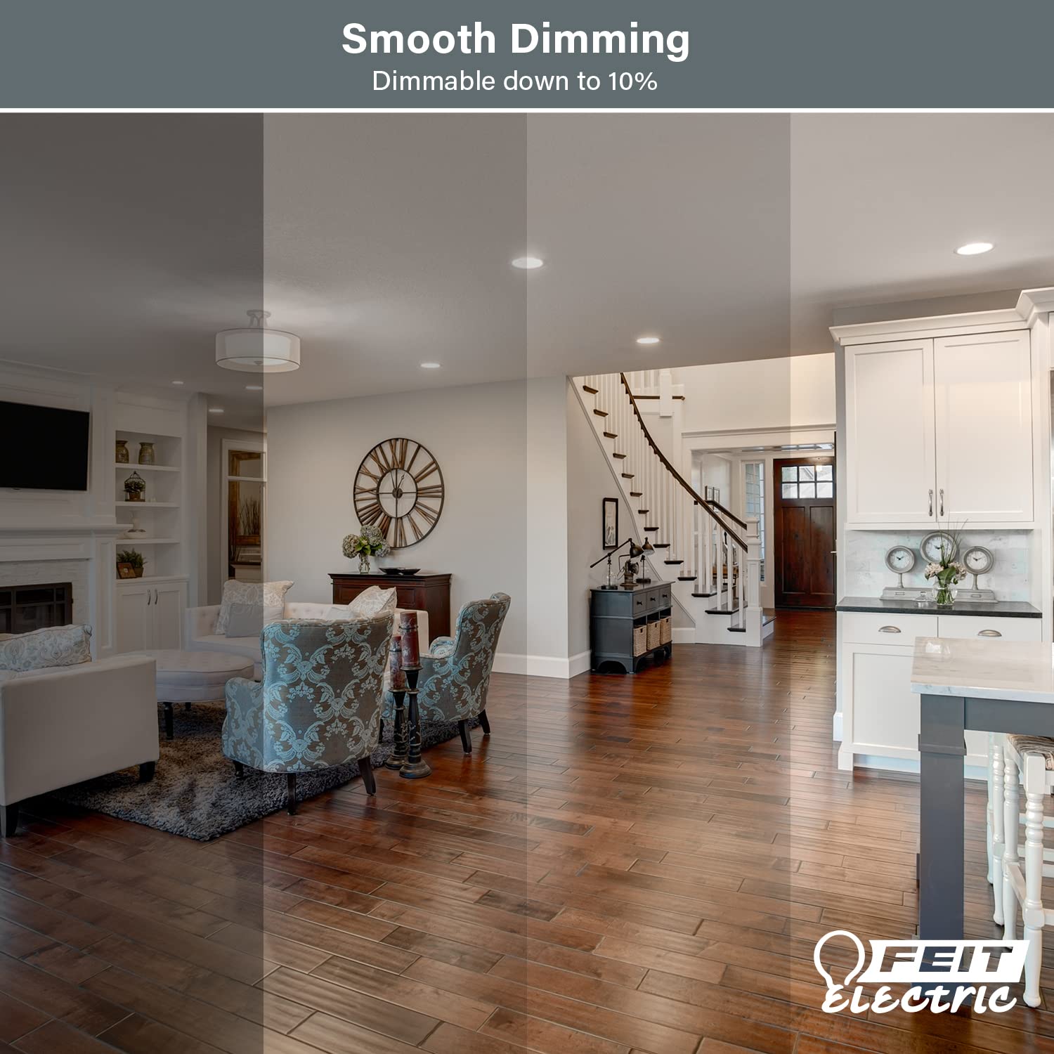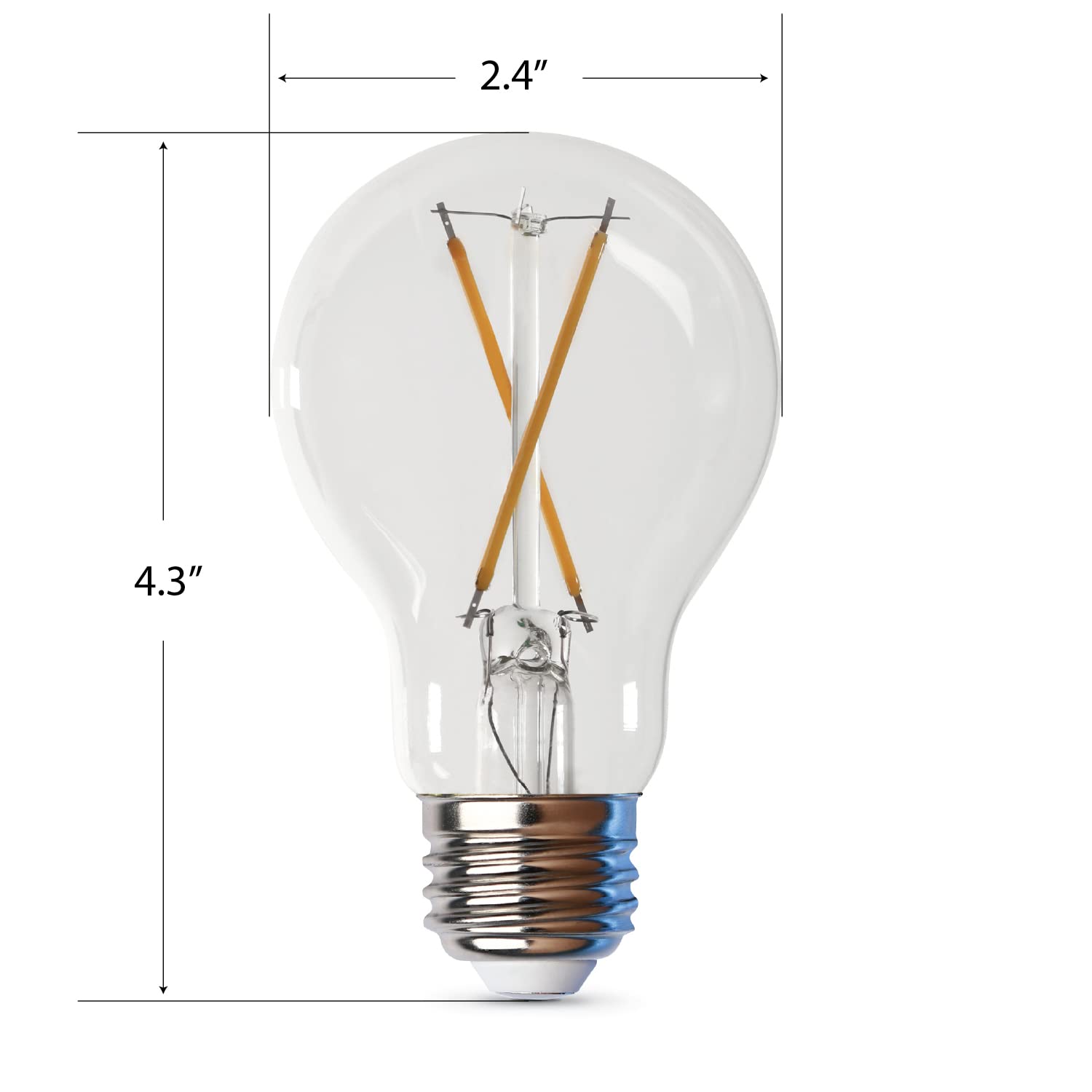 Feit Electric A1940CL930CA/FIL/4 LED A19 Light bulb provides up to 87.5% energy saving by replacing 40W with 5W; replace your old incandescent bulbs for a brighter and more energy-friendly home. Lasting 10 times longer than incandescent and halogen bulbs with a lifespan of up to 10 years, eliminating the need to constantly change your light bulbs. No warm-up time for these bulbs; they will light up instantly with their full brightness of 800 Lumens with stable bright white color. This dimmable LED recessed light has a wide range of uses; compatible with most LED dimmers, you can create your favorite space by utilizing the smooth dimming range of 10% - 100%. This 3000K color temperature produces a comfortable, warm, yellowish, and calm glow; the most popular choice for homes; widely used for living rooms, bedrooms, bathrooms, lobbies, and hallways. UL listed, and FCC compliant, Feit Electric upholds the highest standards for all our light bulbs, fixtures, and string lights with optimal performance and safety; with 40+ years of experience in lighting, we are the leader in lighting innovations. This pack includes 4 (four) LED Recessed Lights with a Medium E26 Base adapter; great value along with the convenience and ease of purchase.Seller Note: Missing one Light Bulb.