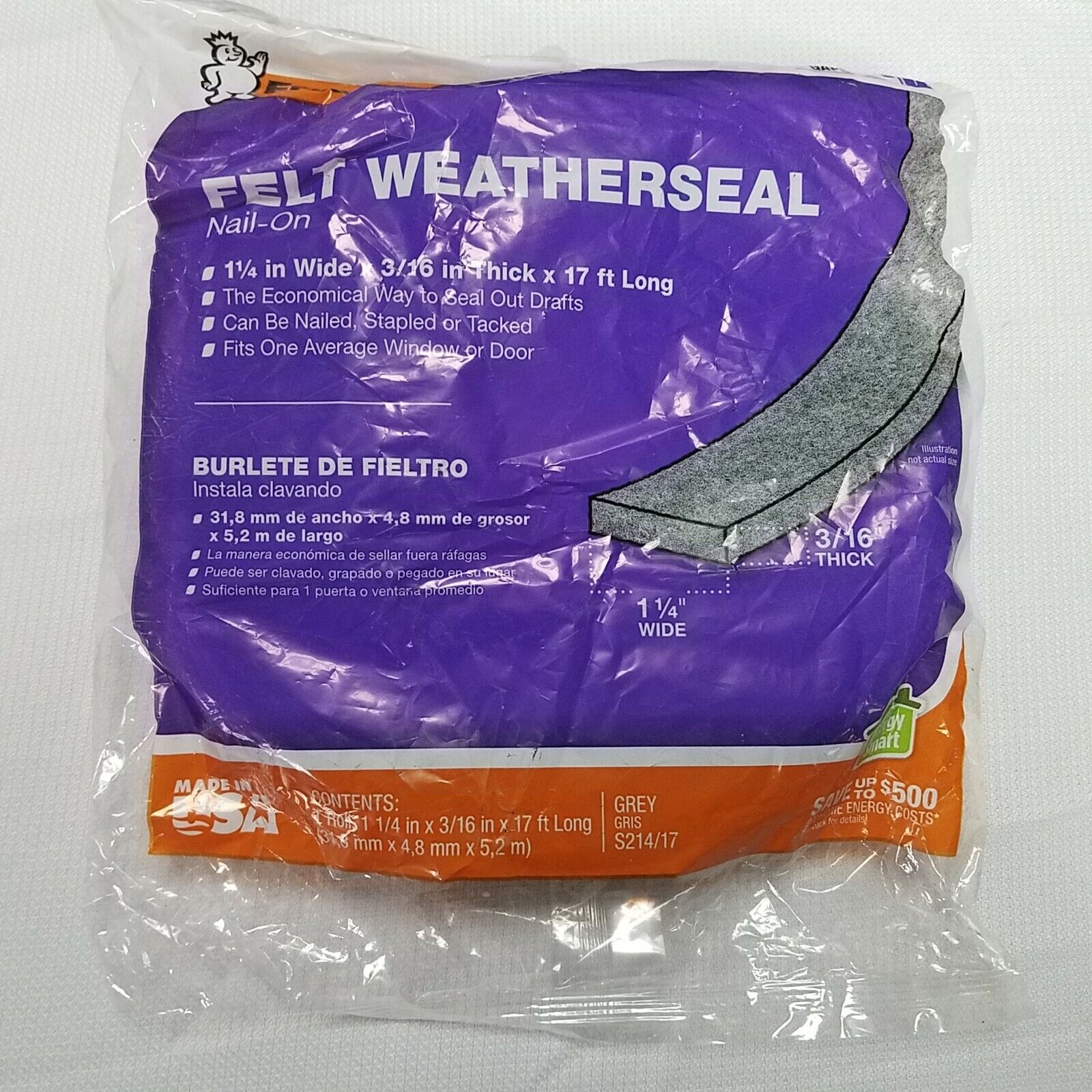 Product Description Frost King S214/17H Felt Weather-Strip 1-1/4-Inch By 3/16-Inch By 17-Feet, From the Manufacturer Frost King Felt Weather-strip is the original weather-strip and still the most economical way to seal out drafts and dust around windows and doors. The high quality felt strip can be nailed, tacked or stapled in place to the frame or molding. Manufacturer Contact Information 1-800-526-5265