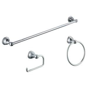 The Glacier Bay Mandouri Mandouri 3-Piece Bath Accessory Kit in Chrome features an expandable towel bar, a tissue paper holder and a towel ring to conveniently integrate with the rest of your bathroom decor. Mounting hardware and plastic anchors help make installation easy. Towel bar can be installed as 18in, 21in, or 24in.