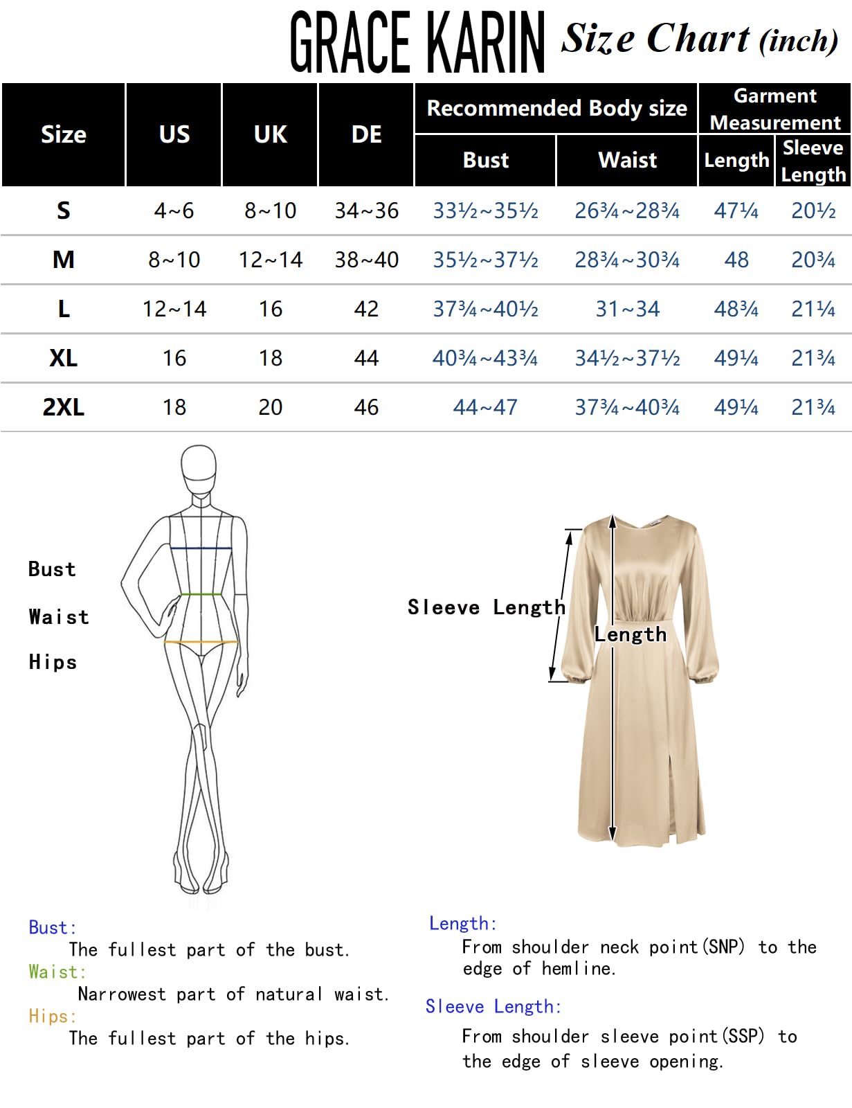 GRACE KARIN Women's Long Sleeve Satin Wedding Guest Dress with Slit Elegant Round Neck High Waist A-Line Midi Dress