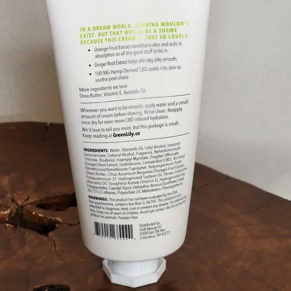 Orange Fruit Extract conditions skin and aids in absorption, Ginger Root Extract helps skin stay silky smooth, 100mg Hemp-Derived CBD soaks into skin to sooth post-shave. additional ingredients : Shea Butter, Vitamin E, Avocado Oil