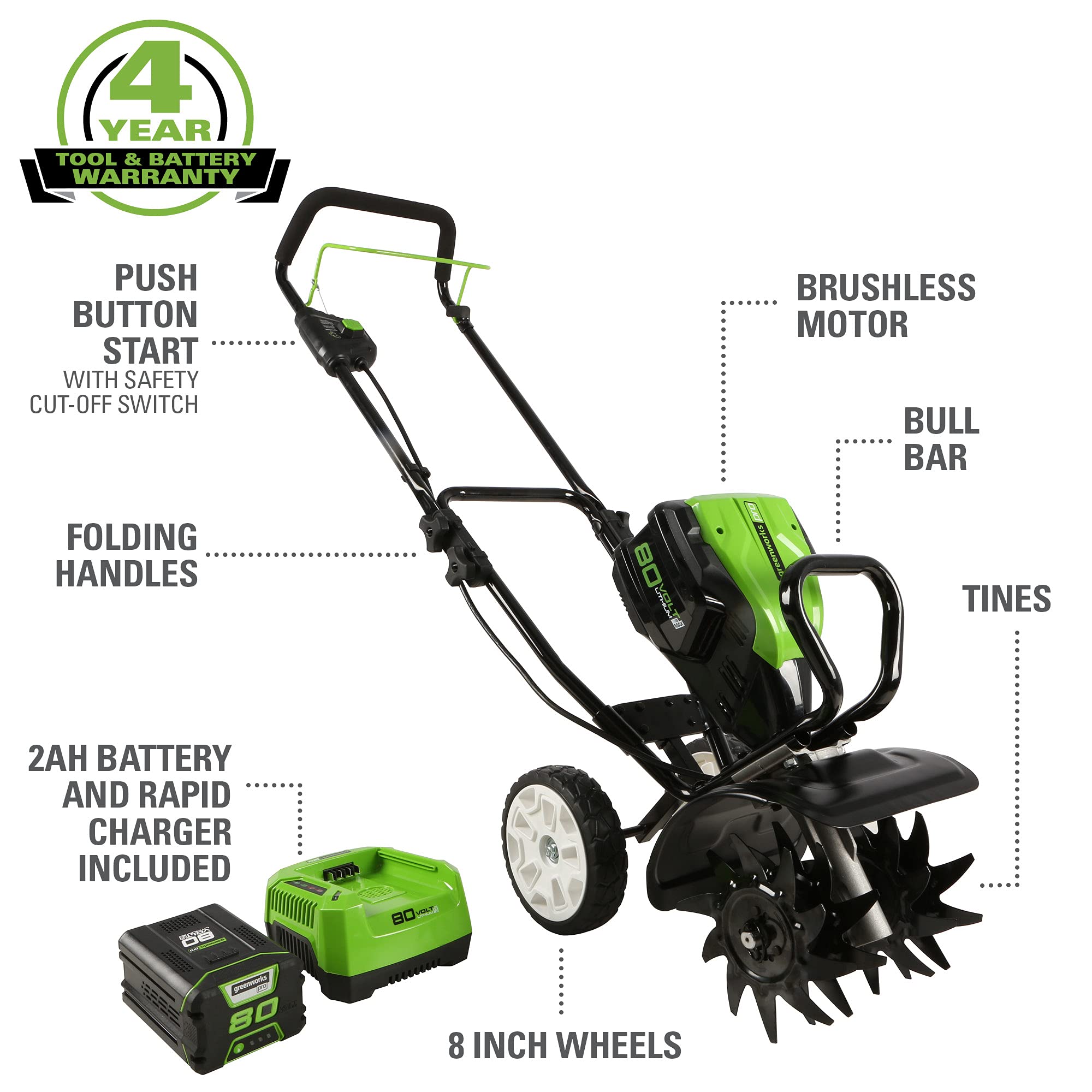 This is an open box / Customer return item. Looks new. Comes in original box. I have not other information about this item. It may or may not run once a battery is attached. That is why I am selling it for parts only.