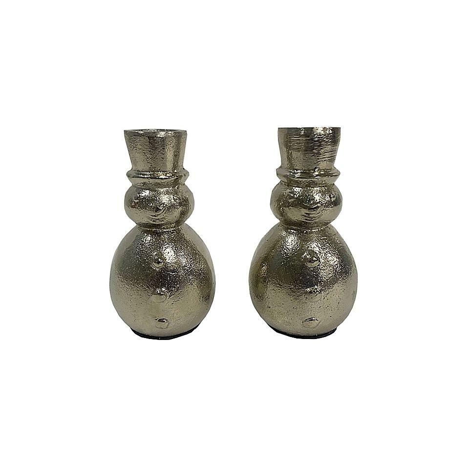 H for Happy Snowman Taper Candle Holders in Silver (Set of 2)