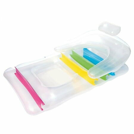 Ideal for chilling out in the pool all day the Kool Lounge is designed to offer maximum comfort whilst kicking back with a refreshing beverage or simply topping up your tan. With your head back and arms supported by the comfortable contoured rests the rest of your body is firmly suspended above the water by the sturdy I-beam construction. With its transparent top and multi-colored I-beams you ll be sure to get into the summertime pool lounging spirit. Dimensions: 65 inches x 35 inches. From the Manufacturer Best way 65 x 35 Cool Lounge; item 43011B Summer Collections Inflatable Cool Lounge; Built with High-Grade PVC.