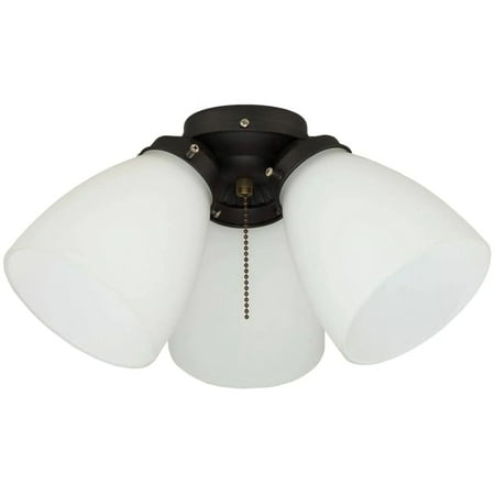 This Elite 3-light ceiling fan light kit is an ideal choice for replacing worn or outdated fan lights. with the included long-lasting LED light bulbs the light kit produce bright illumination and eliminate the need to change bulbs in hard-to-reach ceiling fans. Featuring white frosted glass shades and a rich oil-rubbed bronze this light kit goes well with a variety of indoor ceiling fan styles. Color: OIL RUBBED BRONZE.
