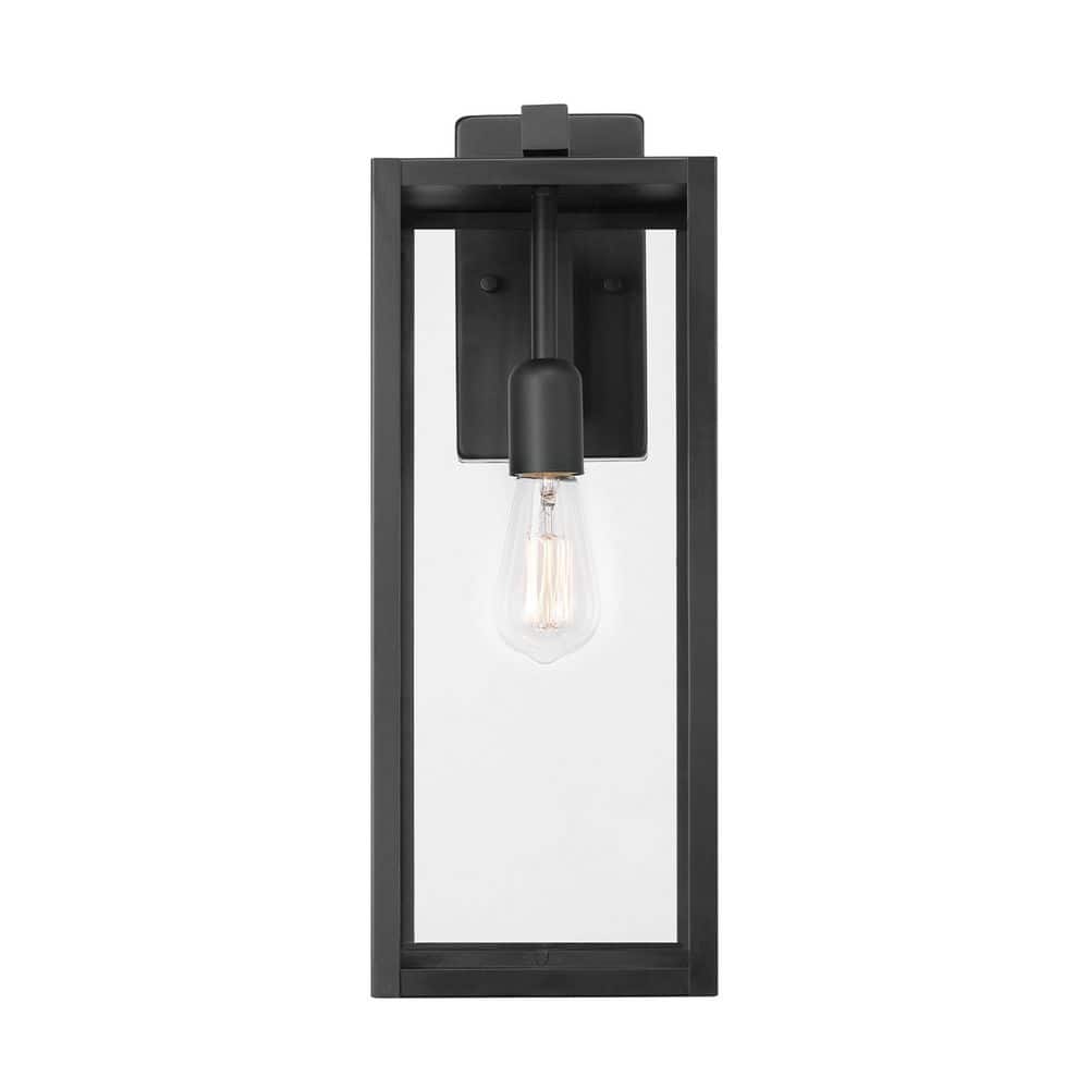 The clean lines clear glass panels and overall shape of the Hampton Bay 19 in. Outdoor Wall Sconce creates a modern light with a farmhouse design feel. A vintage-inspired bulb would add the right embellishment to make this piece truly a work of art. The matte black finish complements all decor and showcases your bulb in just the right way. To create a finished look pair this piece up to have symmetry at your front door on your patio or anywhere else your heart desires.