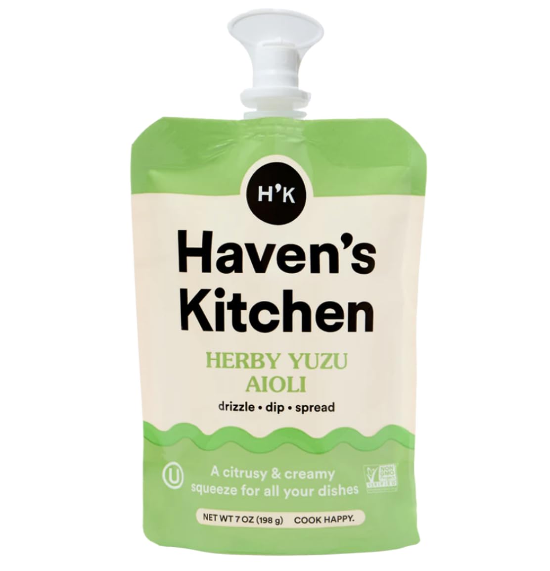 VERSATILE DRIZZLE, DIP, & SPREAD: Big flavors are only a squeeze away!⚡️Haven's Kitchen Herby Yuzu Aioli does some serious heavy lifting. Use it as a shortcut to extra delicious after-school snacks, desk lunches, and leftovers! Drizzle on tacos, grain bowls, and salads. Dip crispy fries, nuggets, and crudités. Spread on sandwiches and burgers 🍔.