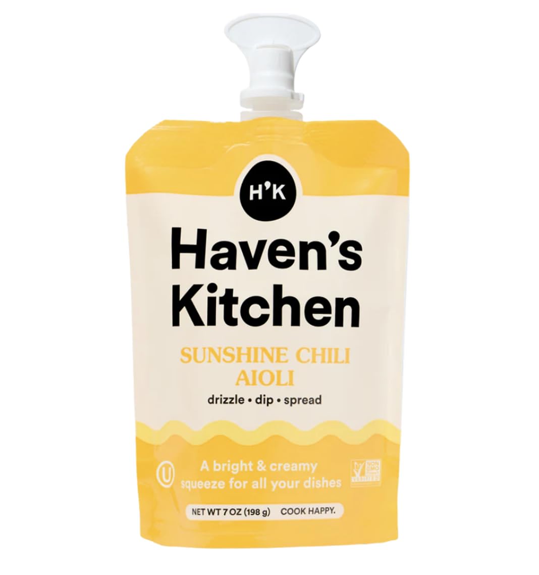 VERSATILE DRIZZLE, DIP, & SPREAD: Big flavors are only a squeeze away!⚡️Haven's Kitchen Sunshine Chili Aioli does some serious heavy lifting ☀️. Use it as a shortcut to extra delicious after-school snacks, desk lunches, and leftovers! Drizzle on tacos, grain bowls, and salads. Dip fries, nuggets, and crudités. Spread on sandwiches, burgers & grilled goodies 🍔.