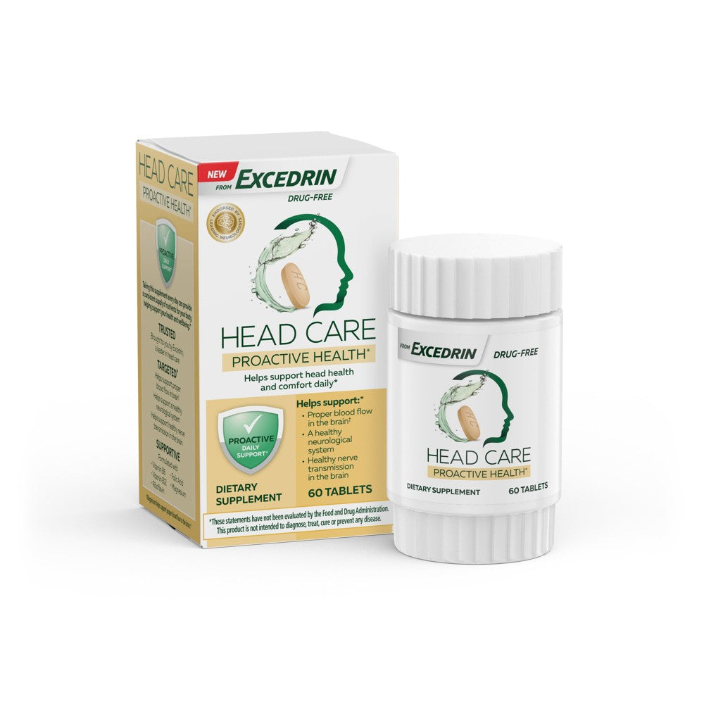 Daily Head Care Help support daily head health and comfort with Head Care Proactive Health Dietary Supplement From Excedrin (1). This dietary supplement is formulated with Magnesium to support proper blood flow to the brain. Riboflavin Vitamin B6 Folic Acid and Vitamin B12 help support healthy nerve transmission in the brain and help support a healthy neurological system (1 2). Endorsed by leading neurologists this dietary supplement also helps support a healthy neurological system (1). This drug-free dietary supplement helps you support your daily head health so you can feel your best (1). (1) These statements have not been evaluated by the Food and Drug Administration. This product is not intended to diagnose treat cure or prevent any disease. (2) Magnesium helps support proper blood flow in the brain (1)
