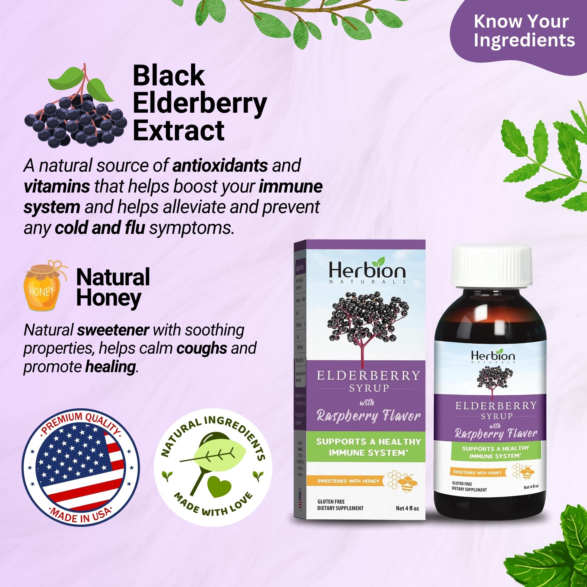Herbion Naturals Elderberry Syrup, Healthy Immune System for Adults and Children (1 Year+), Honey Sweetened with Natural Raspberry Flavor, No Artificial Ingredients