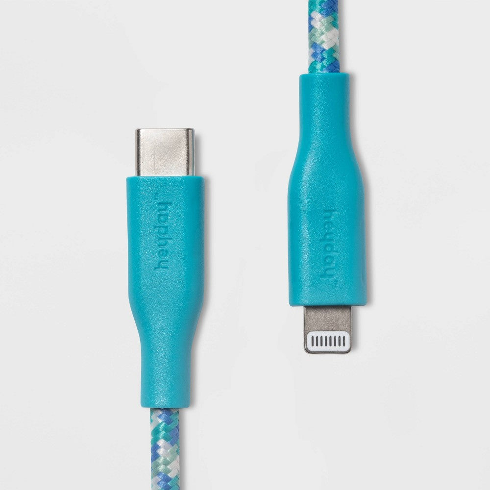 Add a fun look to your essential accessories with the USB-C to Lightning Cable from heyday?. This Lightning charging cable comes in a textured braided design with a Lightning connector at one end and a USB-C connector at the other, letting you plug in compatible Apple products to a wall charger, computer or other USB-C port. The six-foot length is perfect for charging up on an end table, a nightstand or at your desk, giving you enough cable to use your devices while you're powering up. hey, you. It's time to make your day. So take a minute to live out loud, to power your look, and let your style speak volumes. Color: Ocean Teal.