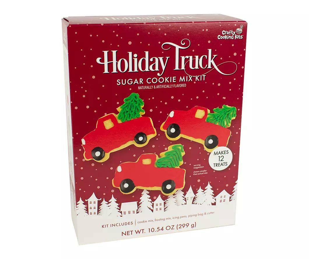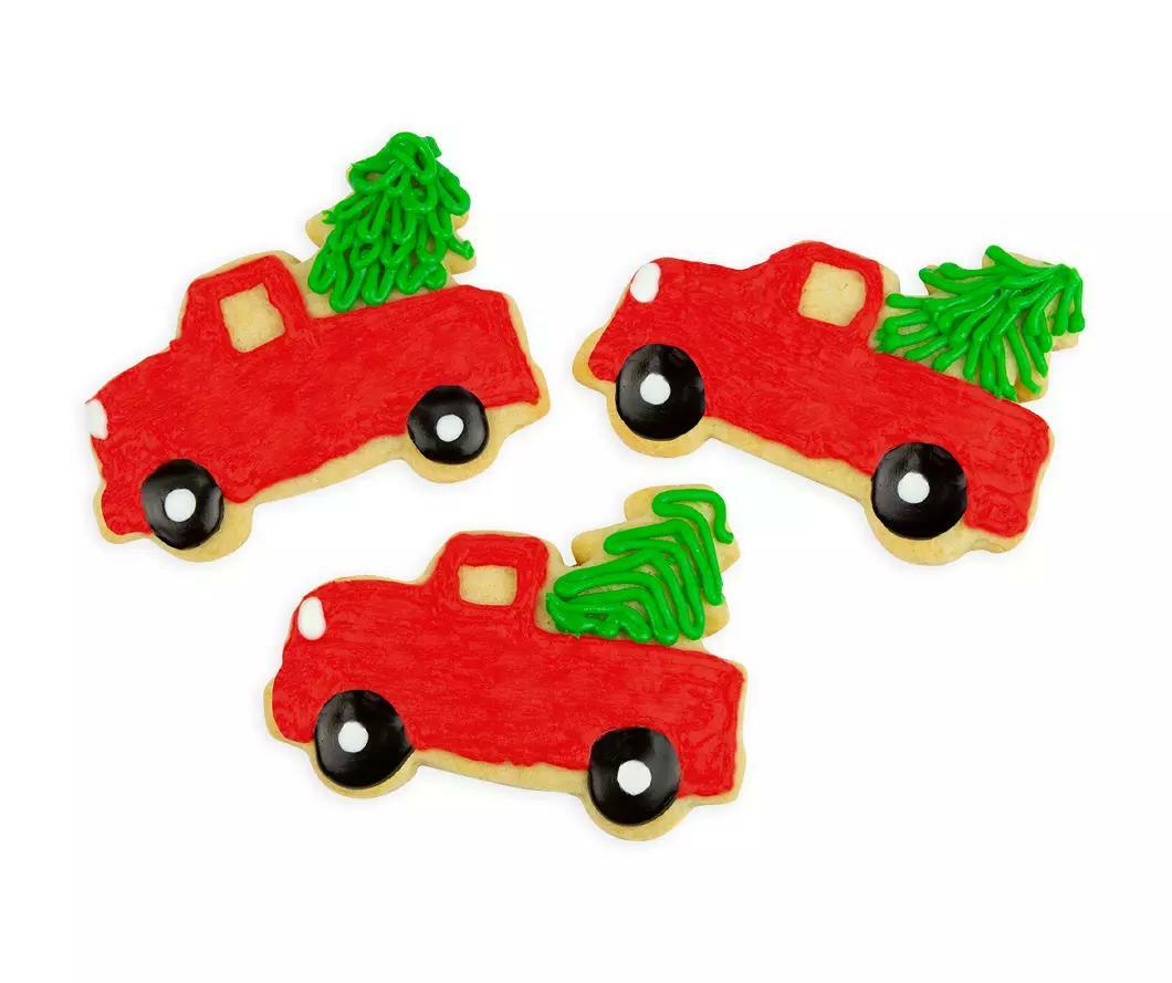 Usher in the holiday season with these festive sugar cookies shaped like trucks carrying a Christmas tree. Scrumptious sugar cookies come with plenty of decorative frosting options and a truck shaped cookie cutter for an unforgettable holiday treat.