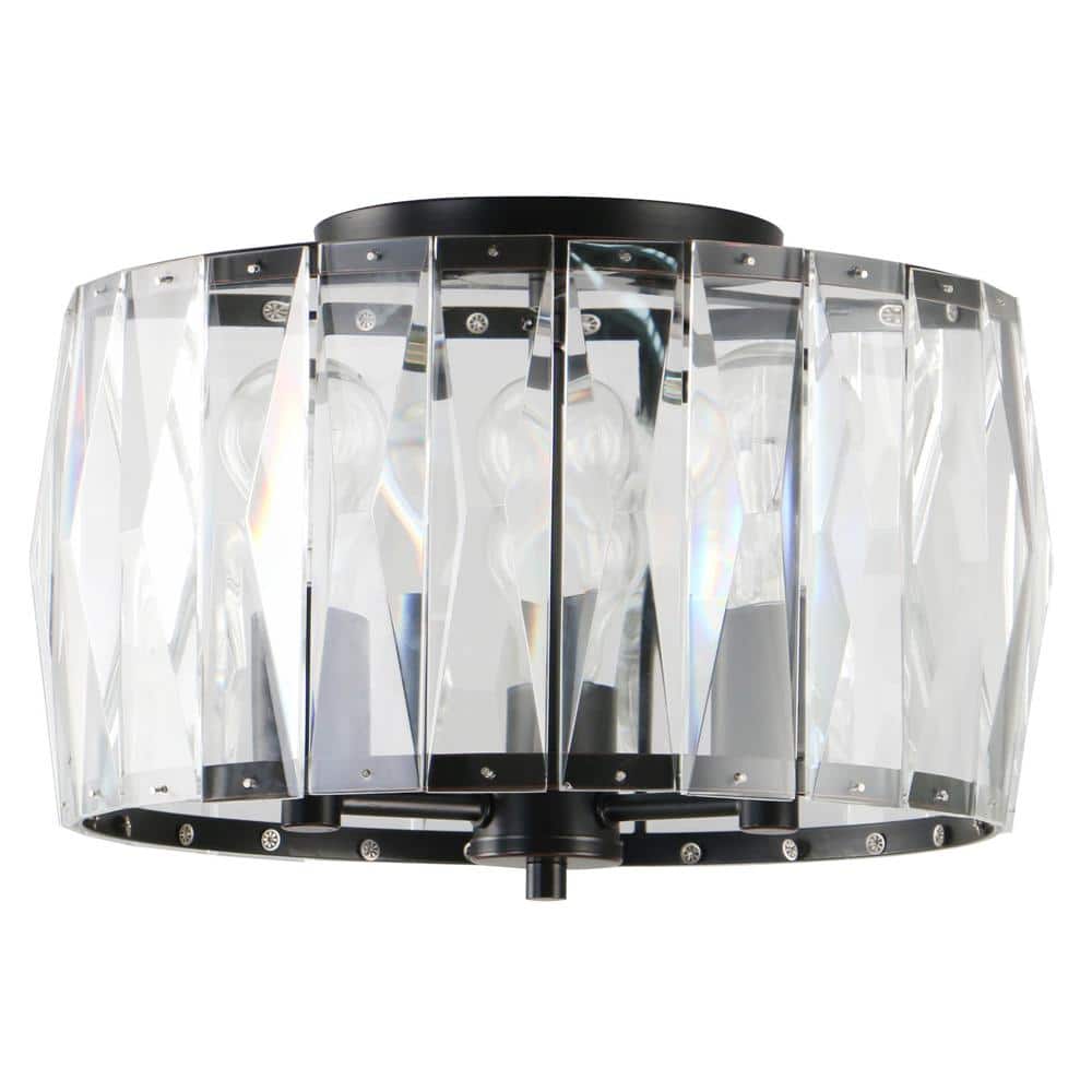 This 3-light semi-flushmount beautifully accents any room and home decor. The fixture is made of steel with black finish and a stylish glass shade. The elegant look that this flush mount provides works flawlessly in a variety of room settings.