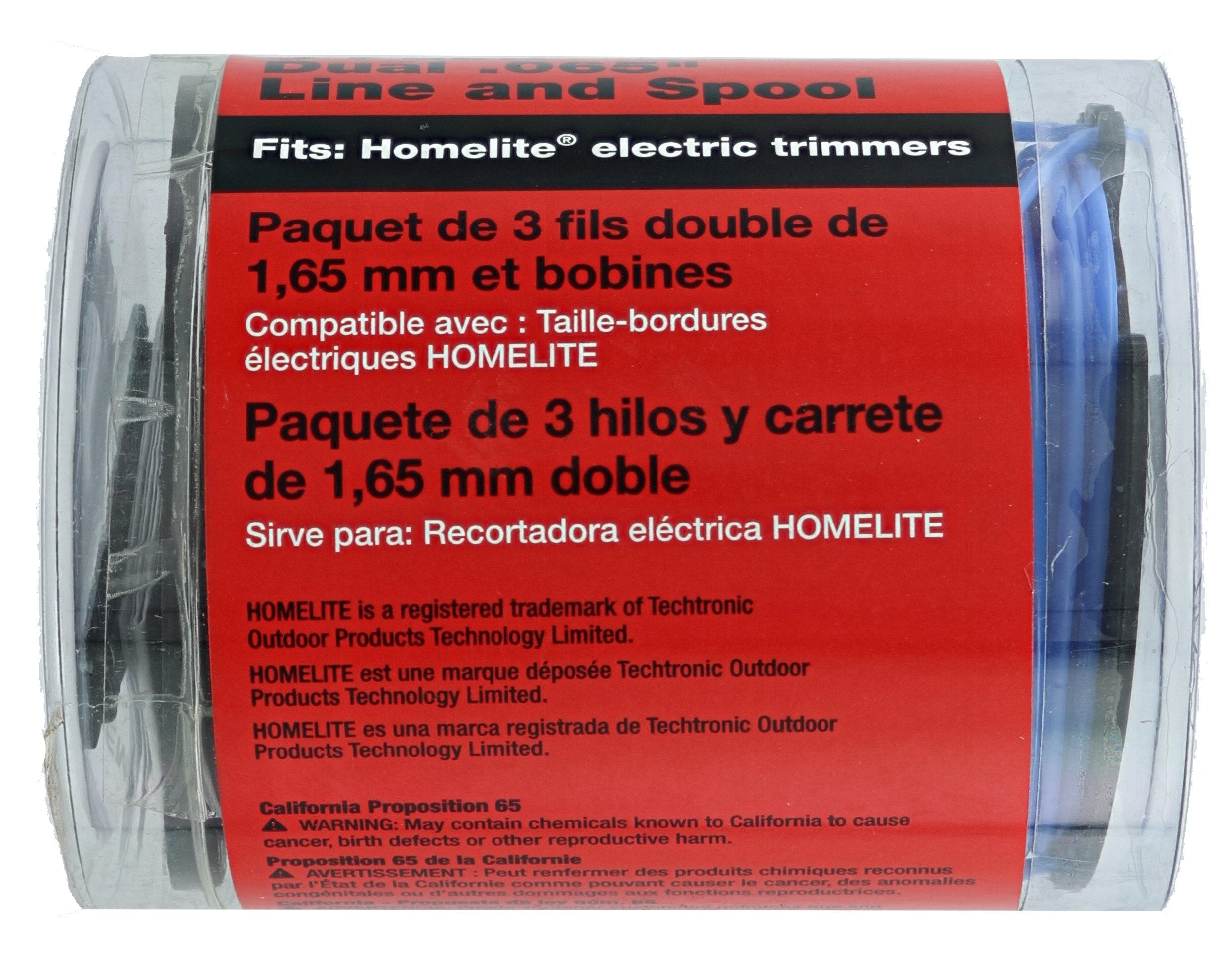 If you want to keep your lawn looking fresh, youre going to need trimmer line. If youre working with a Homelite trimmer, youll need to get Homelite spool and line. This item, the AC41RL3, is a pre-wound spool of .065 trimmer line that will let you complete a variety of outdoor jobs. If you need to get to work quickly, this is the kit you need. Simply plug it in and get the job done quick and fast. This string is durable, letting you cut through swathes of thing grass stalks and light brush with ease. If your job takes a long time and you end up running out of string in the spool, no problem! Replacement is simple. All you need to do is follow the directions printed on the spool with a new set of string and youll be good to go. With three spools in this pack, however, string replacement will be long in coming. Whether youre looking to keep your own lawn neat or are a professional landscaper, youll find this spool from Homelite a convenient solution to your line replacement needs.