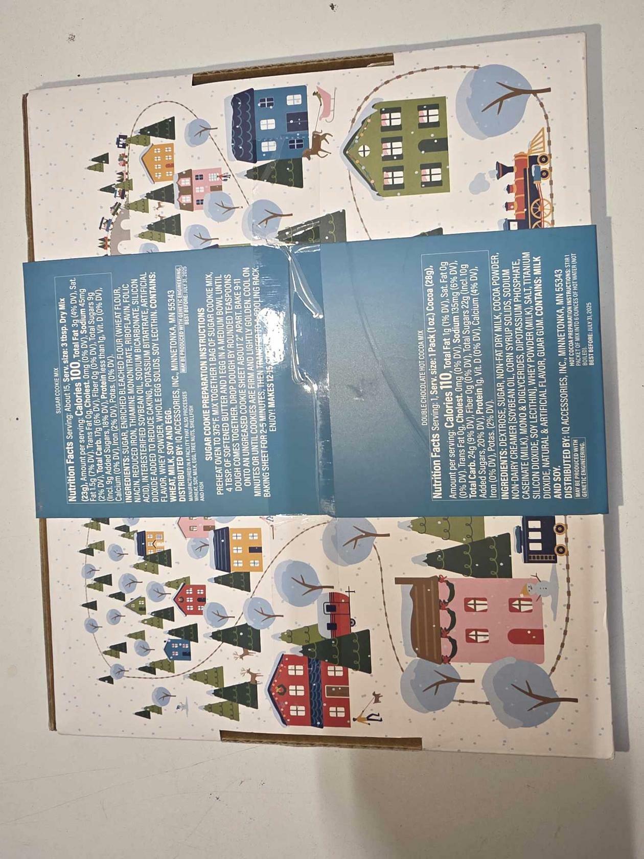 The "Hot Cocoa & Cookies Care Package Kit," which includes sugar cookie mix, hot cocoa mix, and packing materials